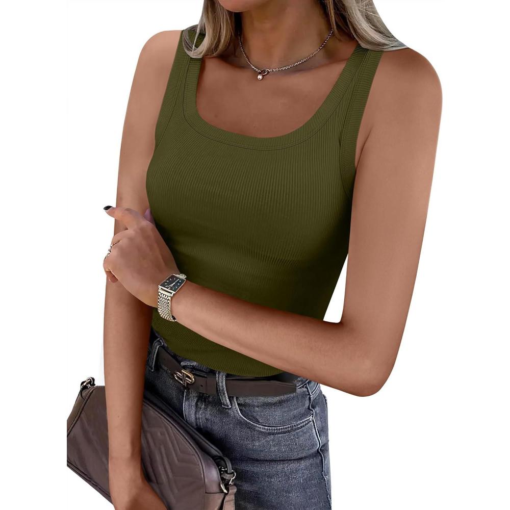 ANRABESS Womens Sleeveless Scoop Neck Tank Top Ribbed Fitted Summer Basic Slim Cute Tops 2026(Green)