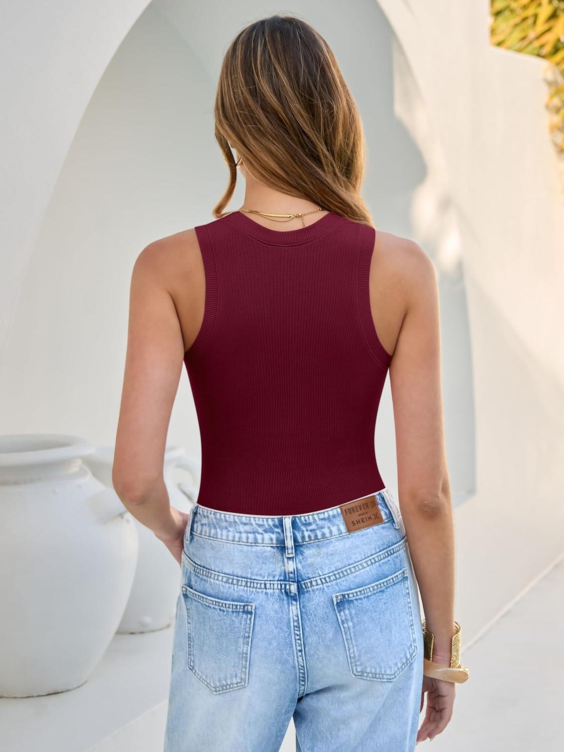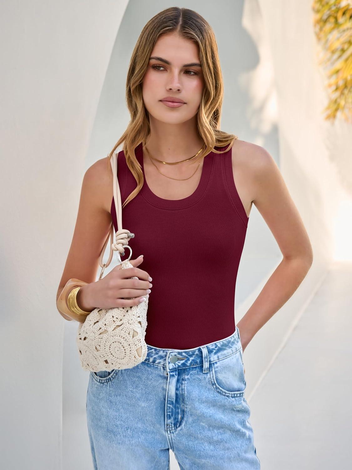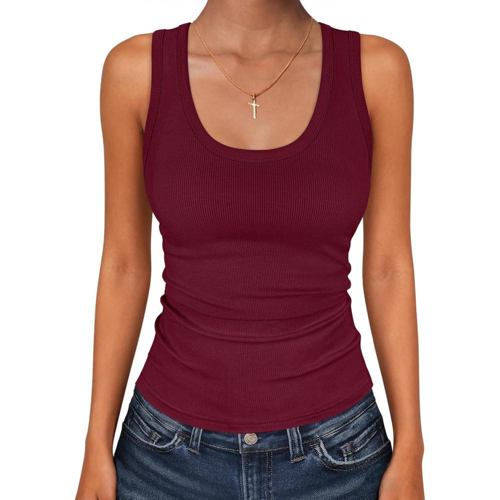 ANRABESS Womens Sleeveless Scoop Neck Tank Tops 2026 Summer Casual Basic Slim Fit Ribbed Knit Racerback Workout Cami Shirts(Deep Red)