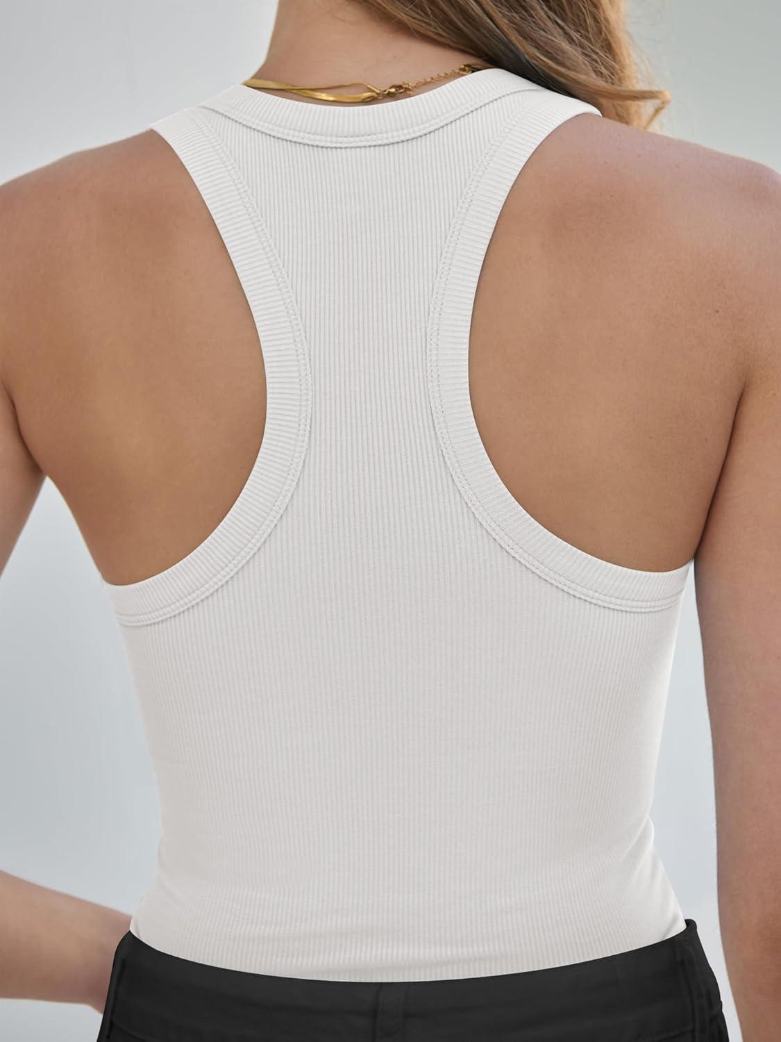 ANRABESS Womens Sleeveless Square Neck Tank Tops Summer Racerback Workout Top Ribbed Knit Slim Fit Basic 2026 Casual Clothes(White)
