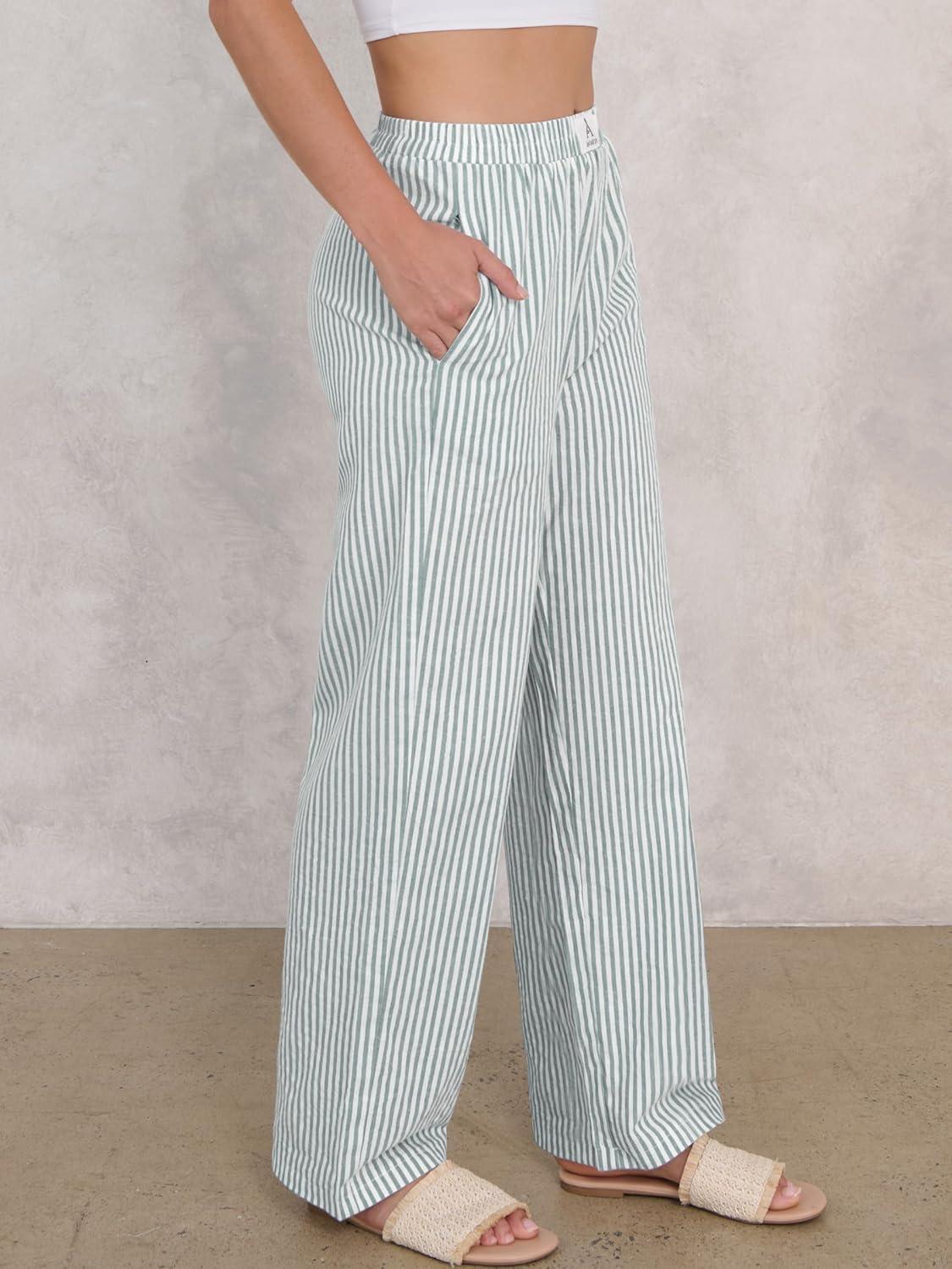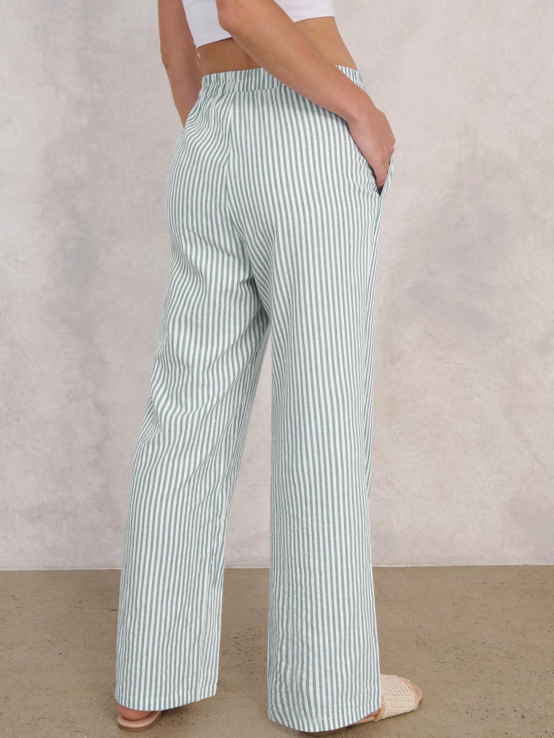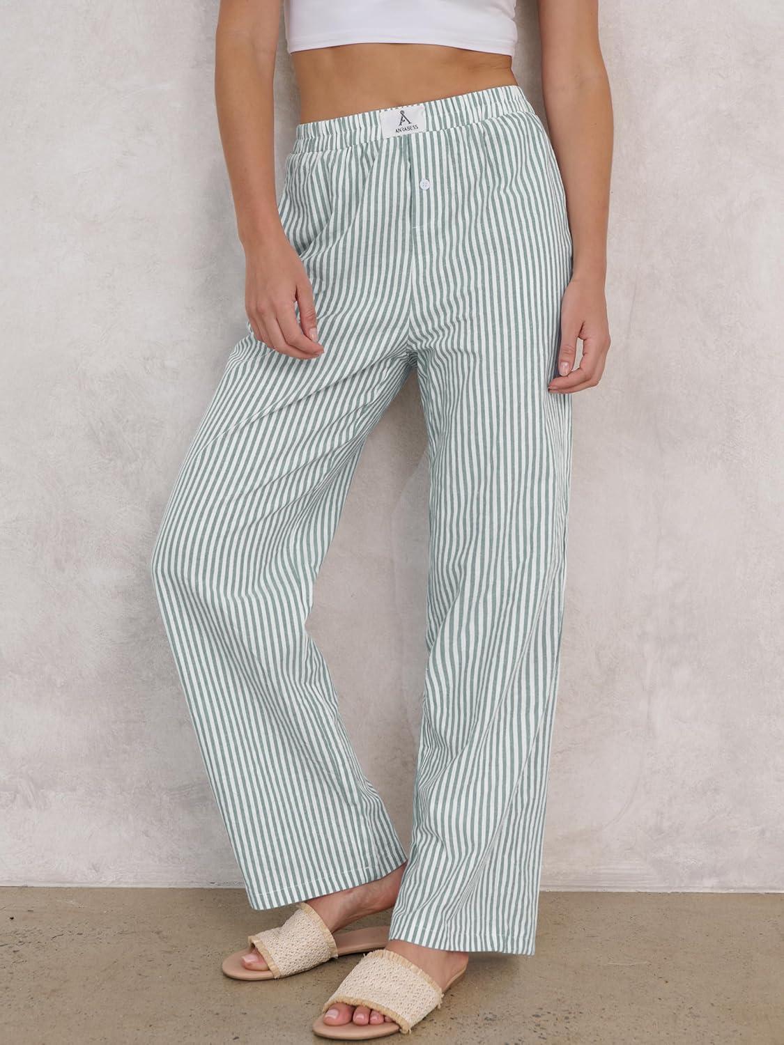 ANRABESS Womens Striped Gingham Pants 2025 Pajama Lounge Boxer Pants Cute Comfy PJ Bottoms with Pockets Y2K Plaid Outfits(Green White Stripe)