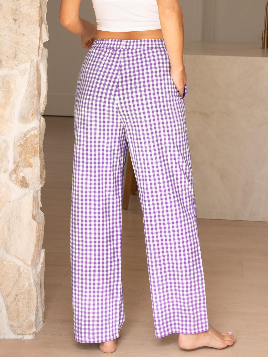 ANRABESS Womens Striped Gingham Pants 2025 Pajama Lounge Boxer Pants Cute Comfy PJ Bottoms with Pockets Y2K Plaid Outfits(Purple White Plaid)