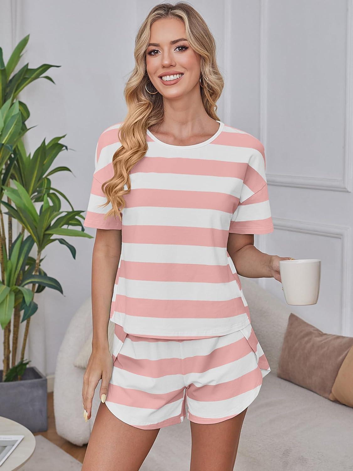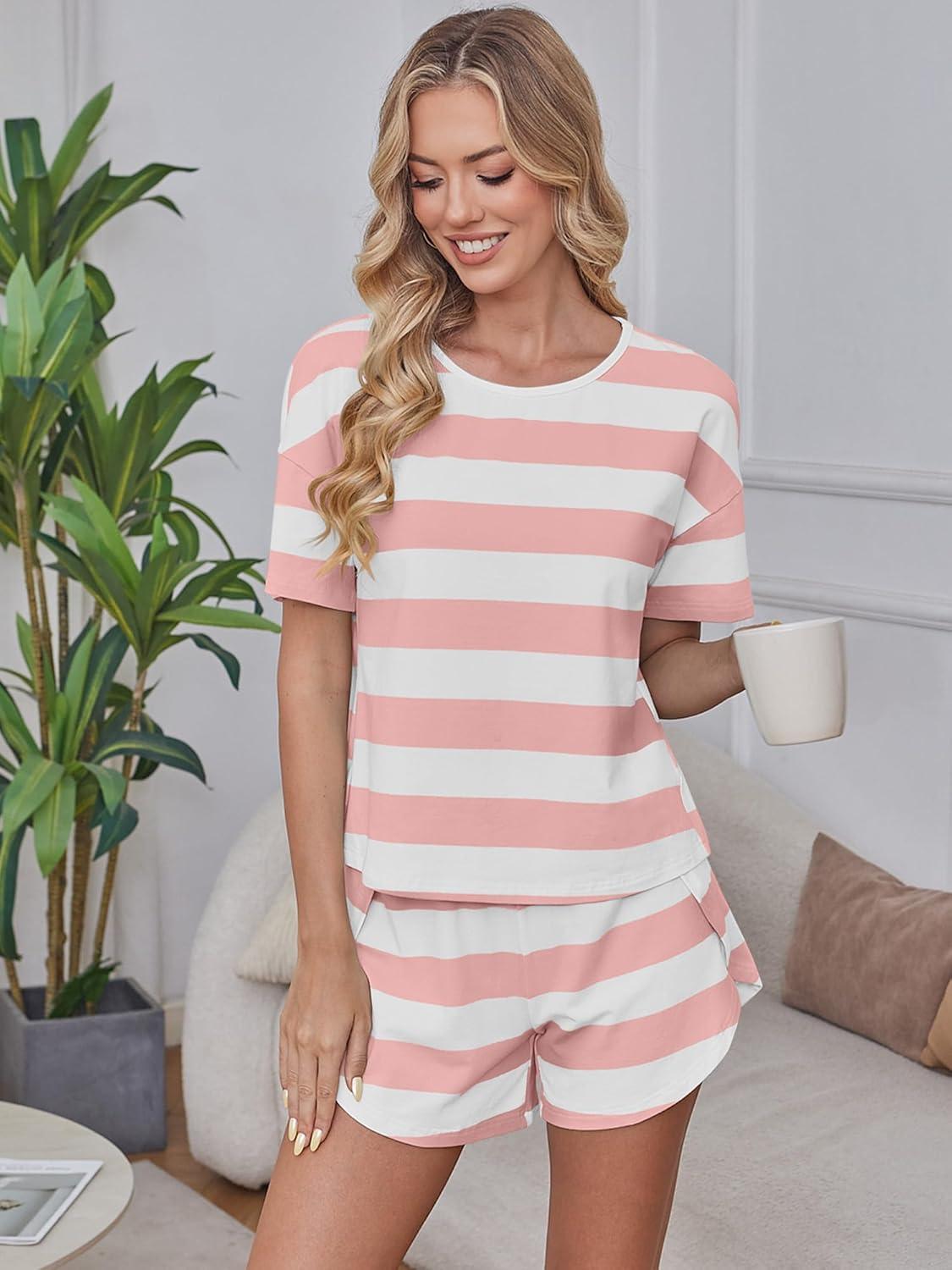 Be the first to review “ANRABESS Womens Striped Pajamas Sets 2026 Summer 2 Piece Lounge Matching Short PJ Set Side Split Spring Sleepwear Outfits(Pink White Wide Striped)”