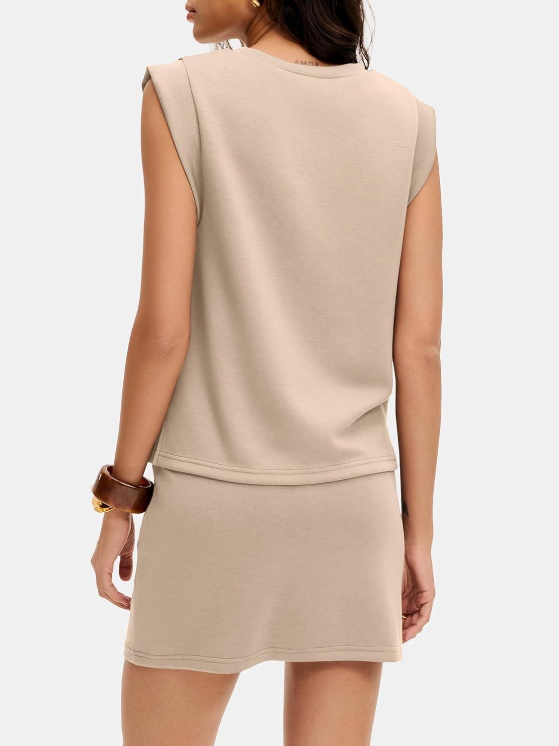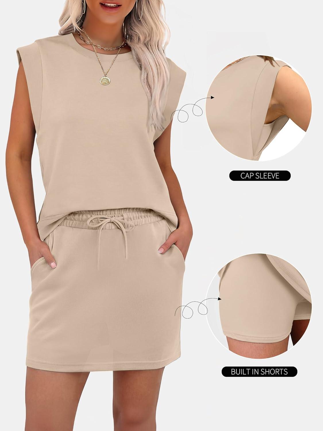 ANRABESS Womens Summer 2 Piece Short Skirt Sets 2026 Cap Sleeve Top Athletic Skort Workout Tennis Matching Set Travel Outfits(Khaki)