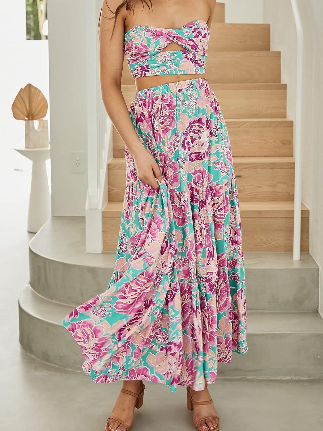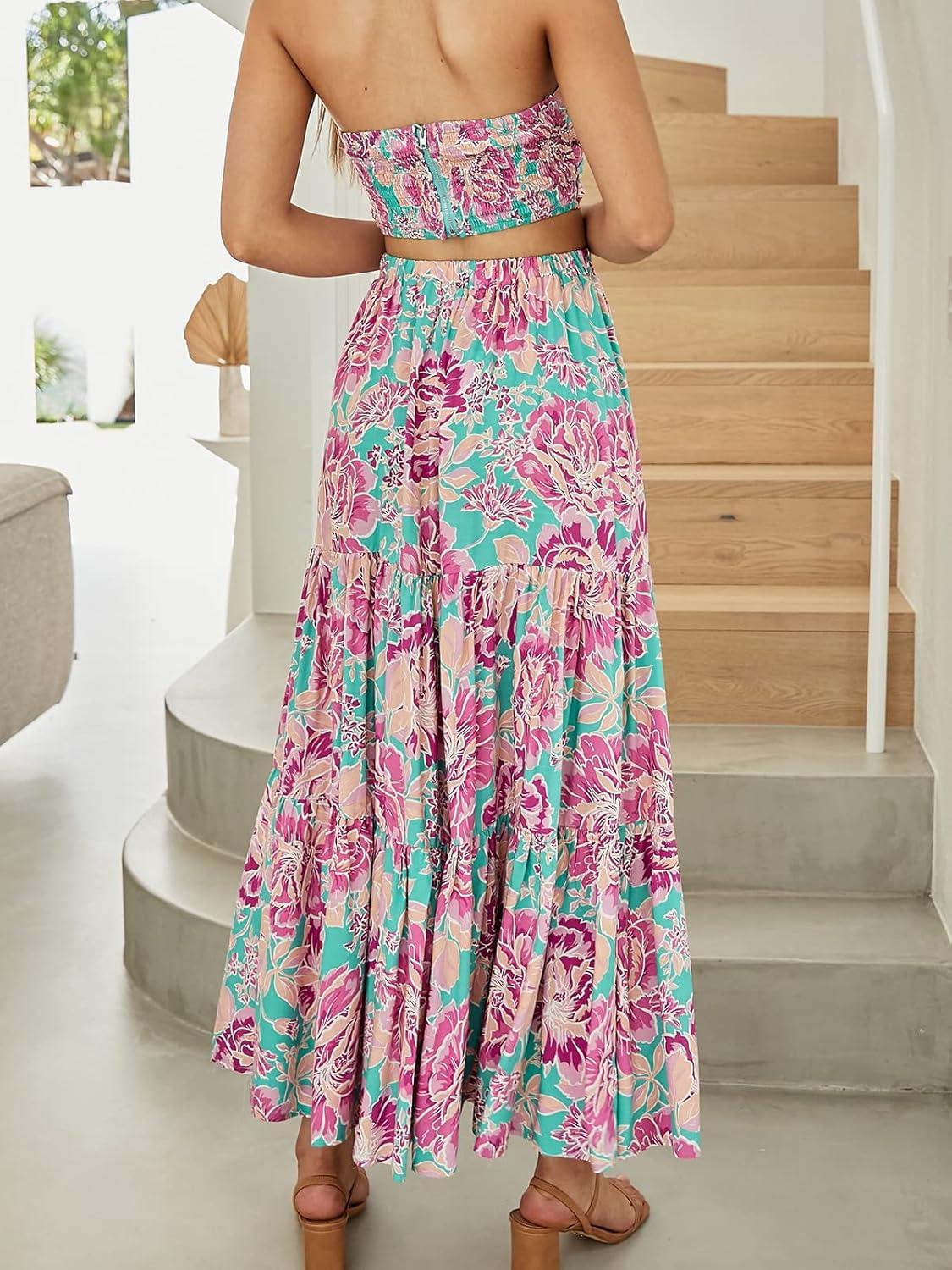 imageANRABESS Womens Summer Boho Flowy Swing Tiered ALine Maxi Skirt 2025 Fashion Trendy Elastic Waist Pleated Long Beach DressFloral 03