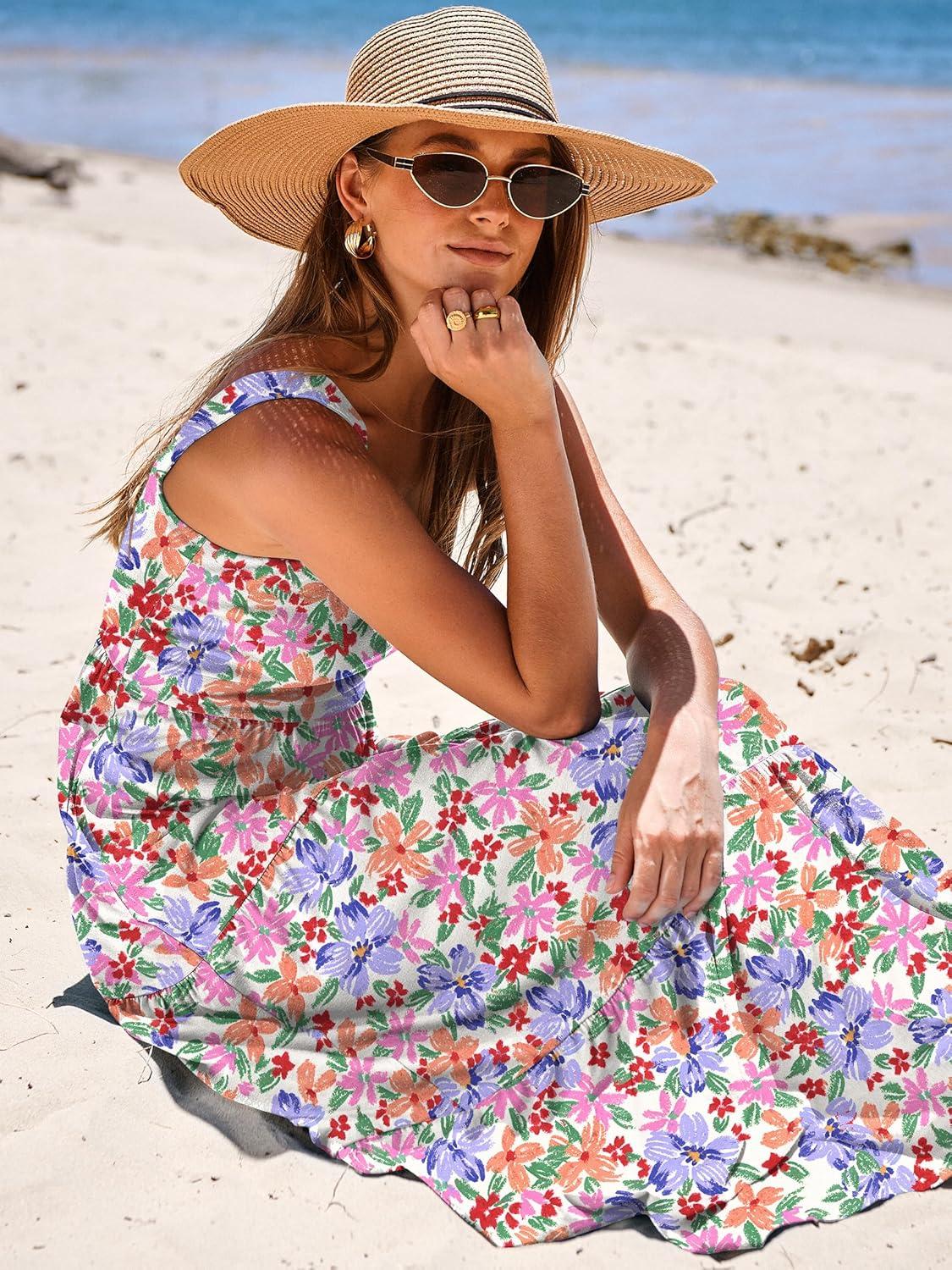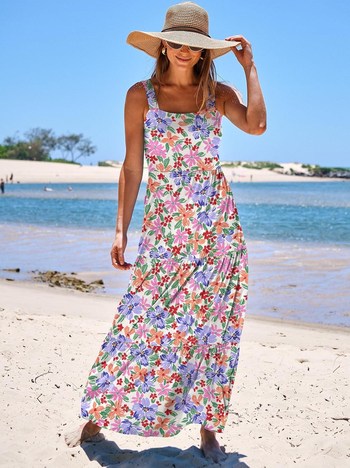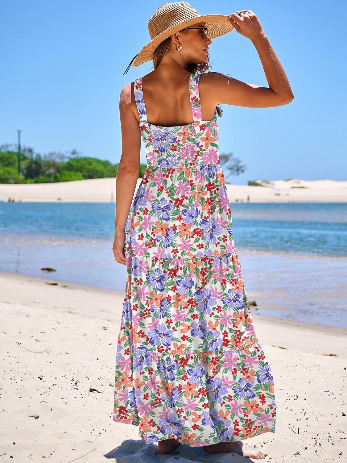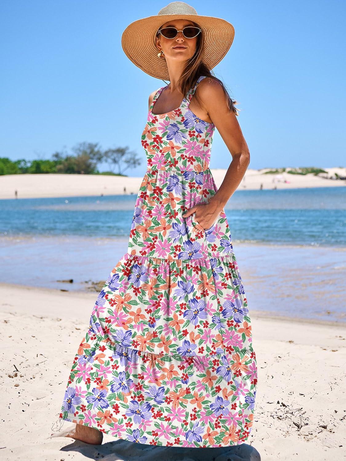 ANRABESS Women’s Summer Casual Long Maxi Beach Vacation Dresses Sleeveless Square Neck Flowy Tiered Sun Dress with Pockets(Crayon Multicolored Floral)