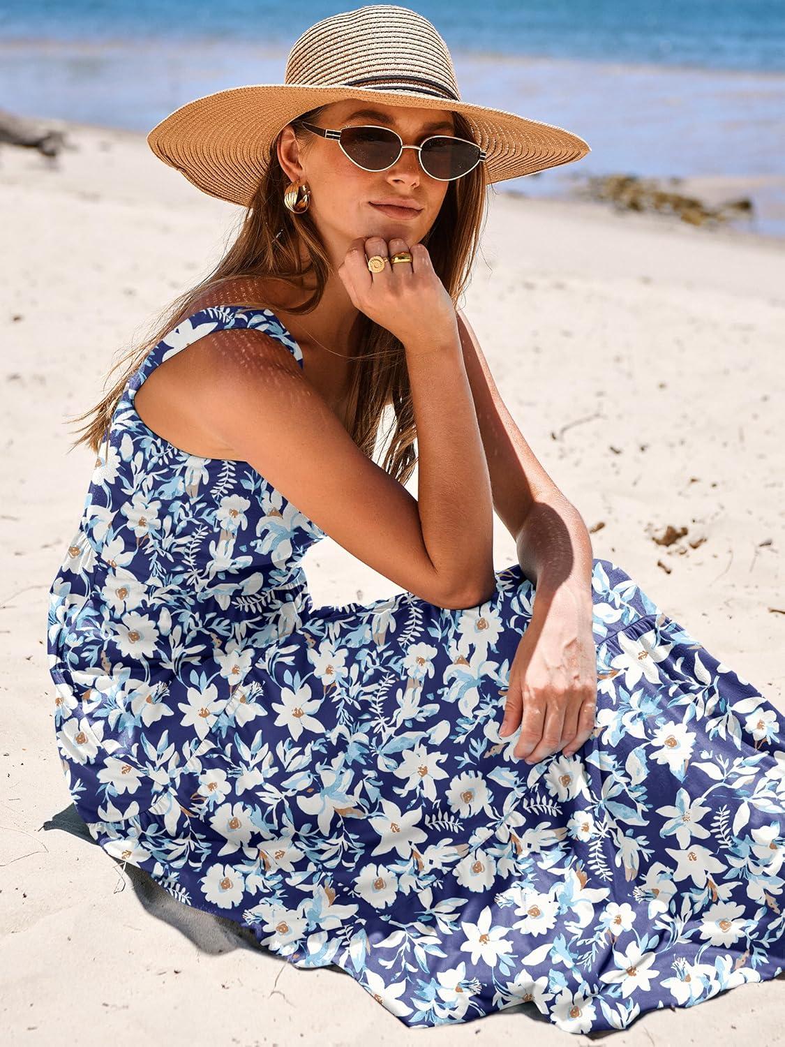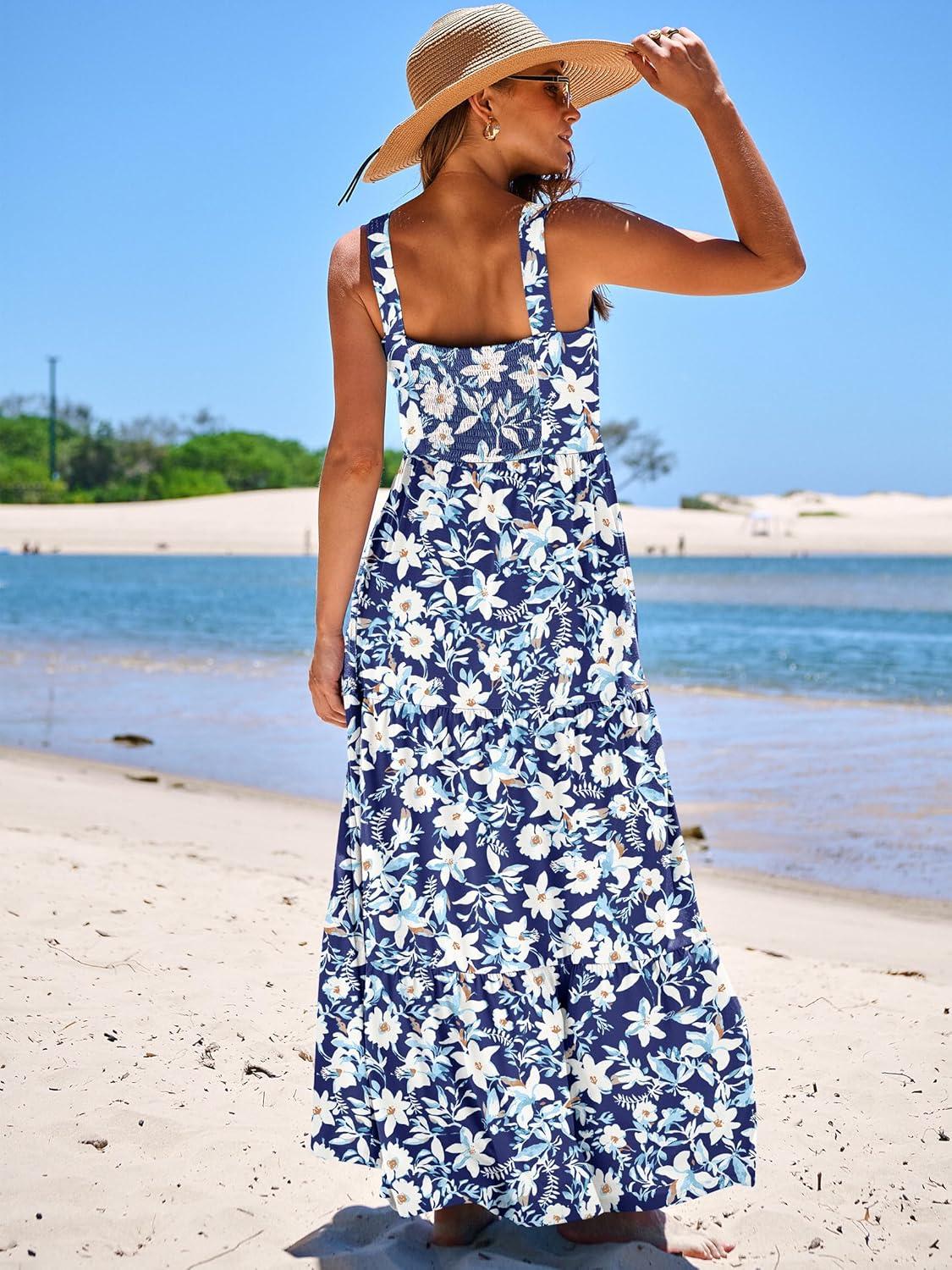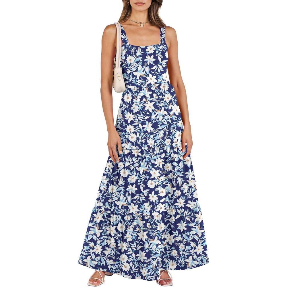 ANRABESS Women’s Summer Casual Long Maxi Beach Vacation Dresses Sleeveless Square Neck Flowy Tiered Sun Dress with Pockets(Multicolored Floral)