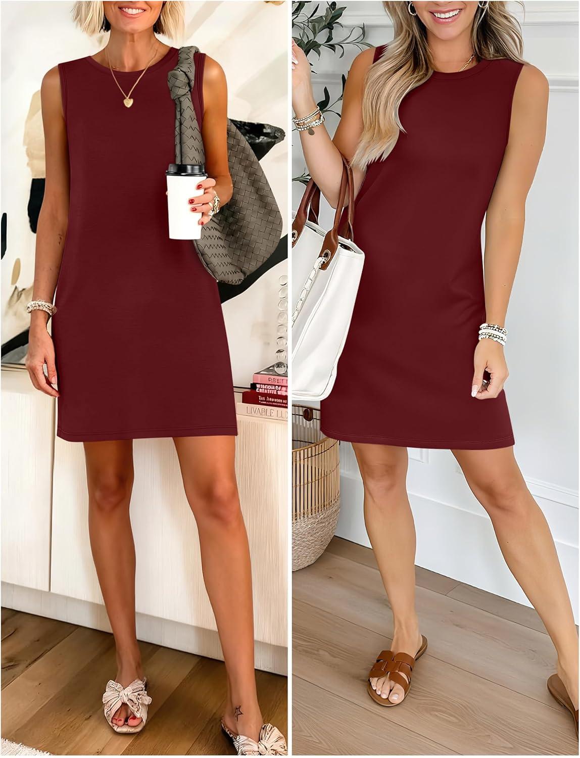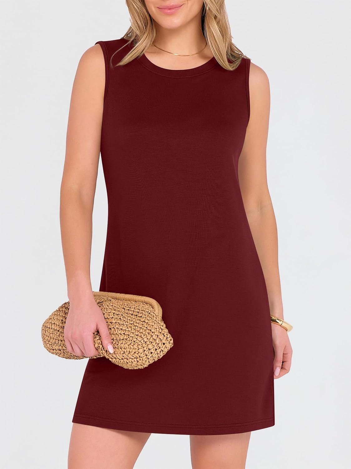 ANRABESS Womens Summer Casual Mini Dresses 2026 Sleeveless Crewneck Split Wrinkle-Free Beach Travel Vacation Short Sundress(Wine Red)