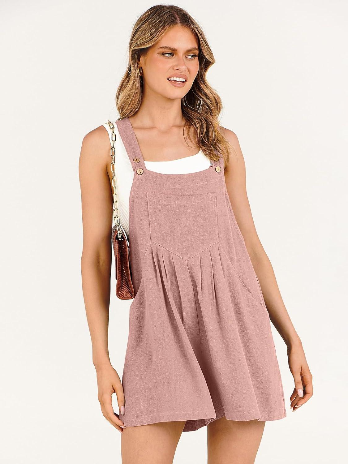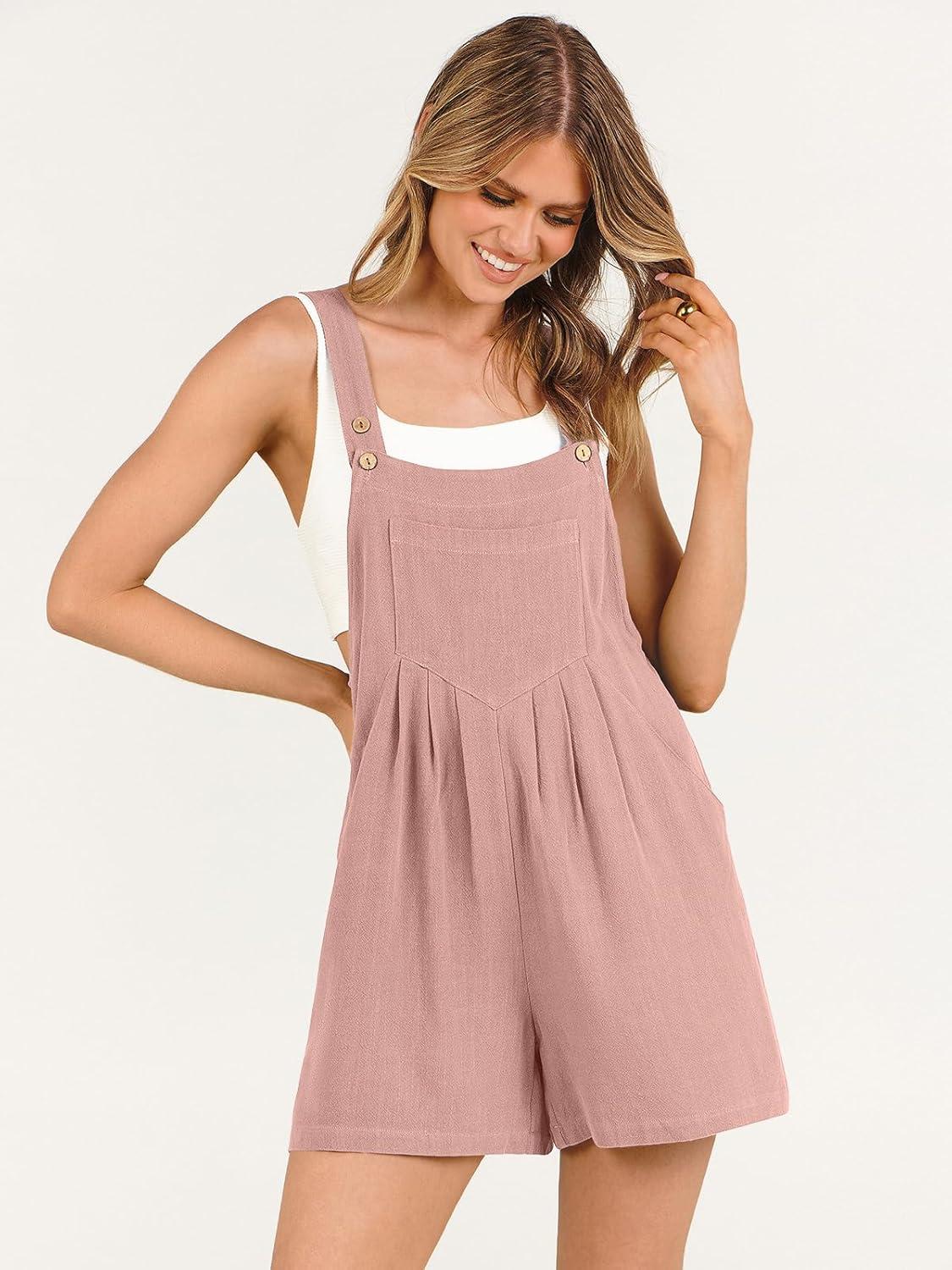 ANRABESS Women's Summer Casual Rompers Bib Short Overalls Loose Linen Jumpsuit Beach Outfits Travel Vacation Clothes(Pink)