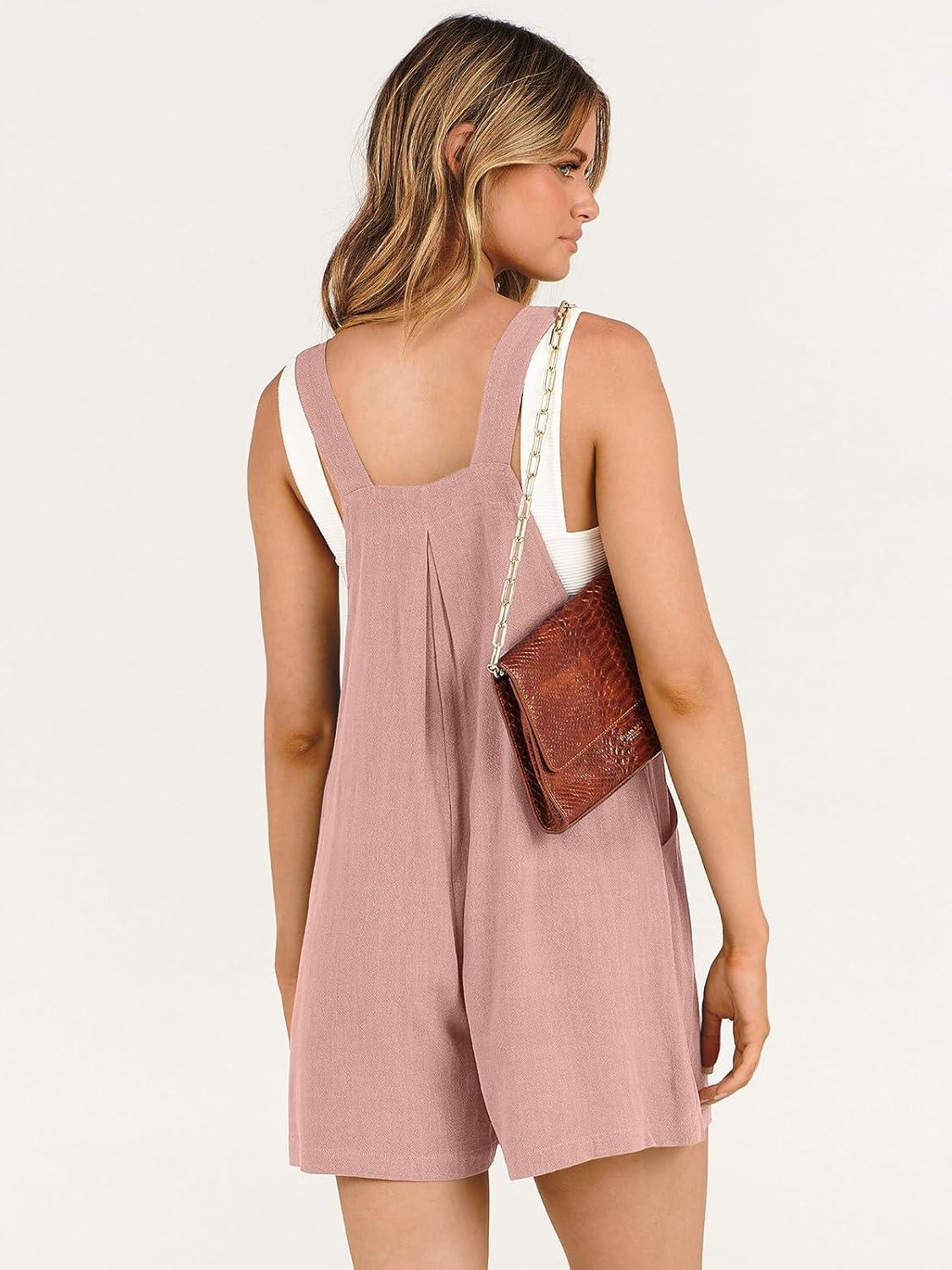 imageANRABESS Womens Summer Casual Rompers Bib Short Overalls Loose Linen Jumpsuit Beach Outfits Travel Vacation ClothesPink