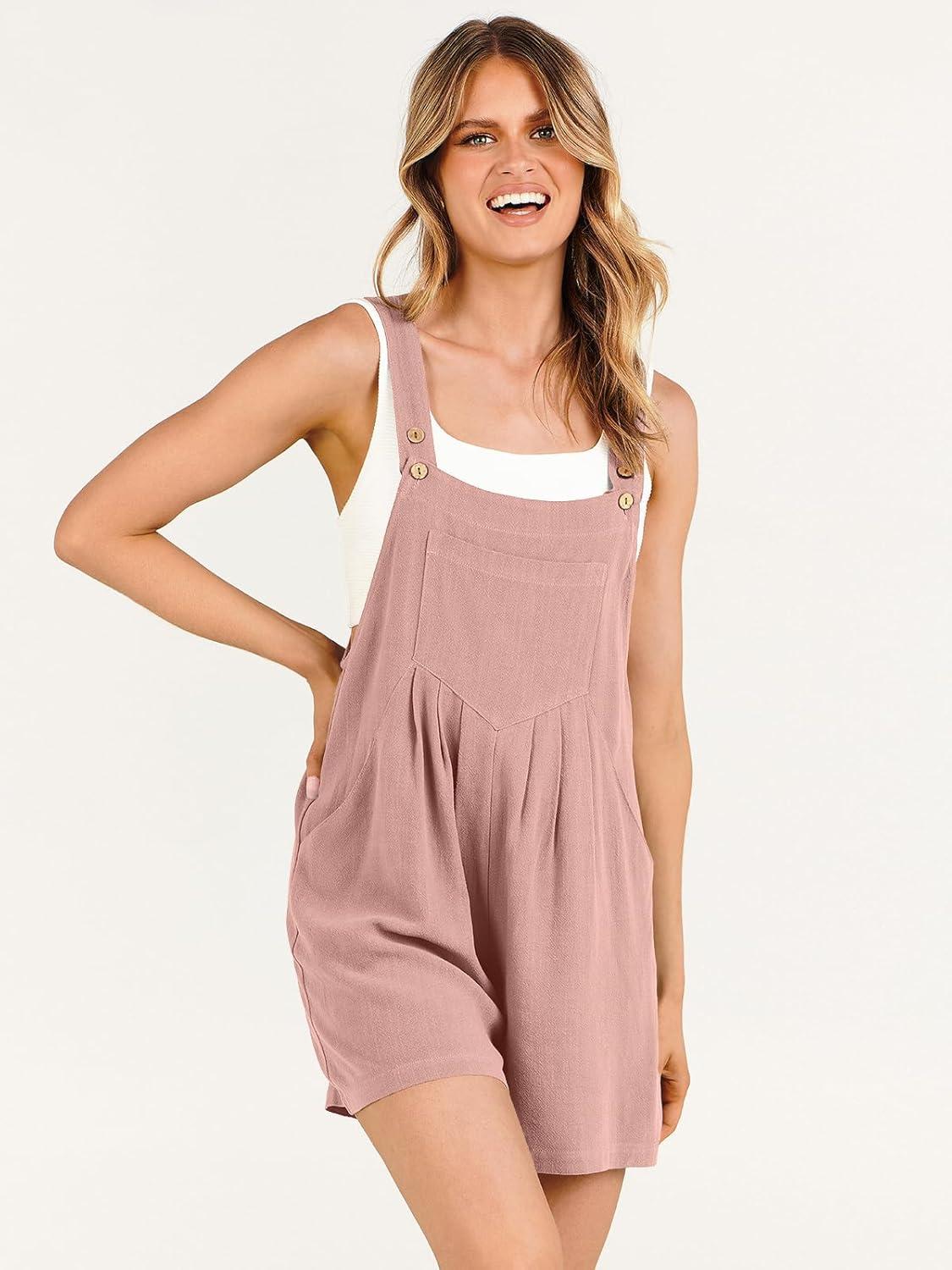 ANRABESS Women’s Summer Casual Rompers Bib Short Overalls Loose Linen Jumpsuit Beach Outfits Travel Vacation Clothes(Pink)