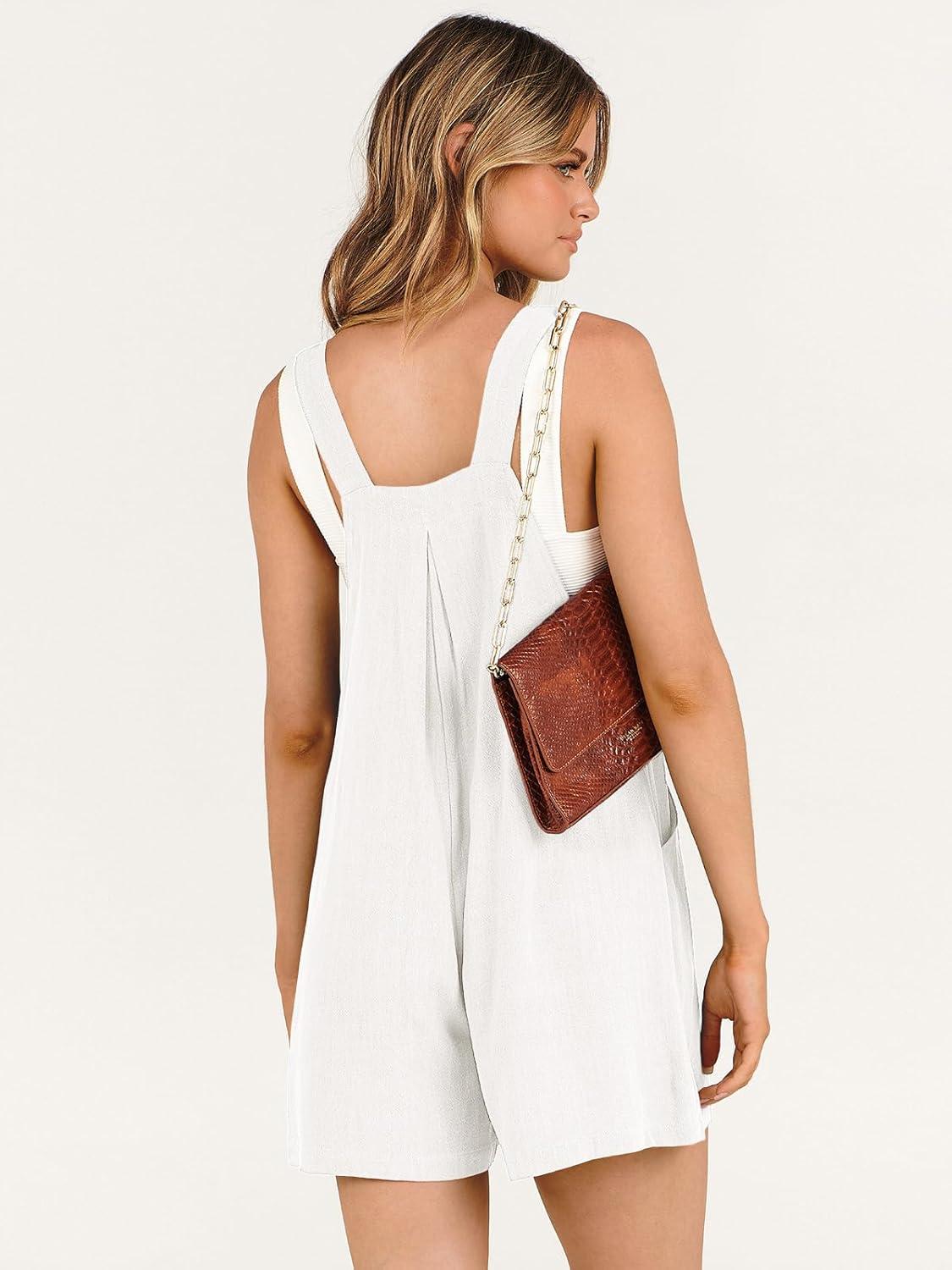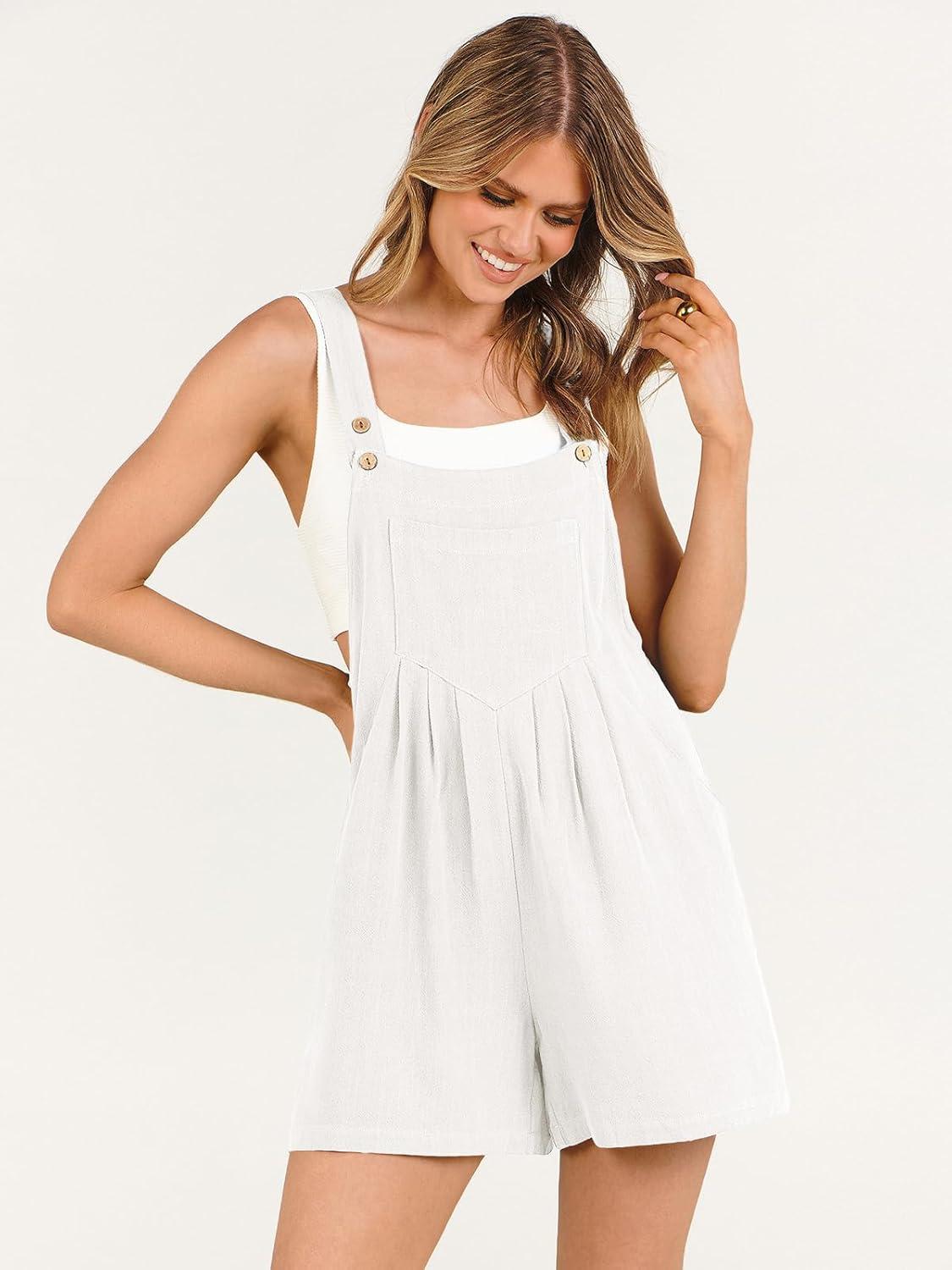 imageANRABESS Womens Summer Casual Rompers Bib Short Overalls Loose Linen Jumpsuit Beach Outfits Travel Vacation ClothesWhite