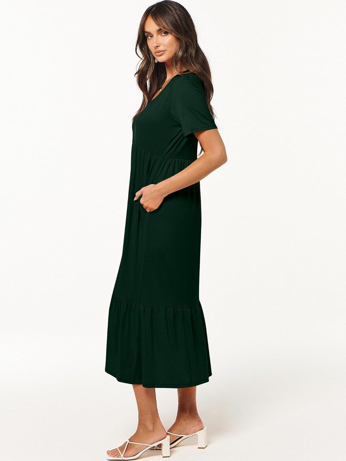 imageANRABESS Womens Summer Casual Short Sleeve T Shirts Maxi Dress Flowy V Neck Tiered Beach Vacation Sundress 2025 OutfitsDeep Green