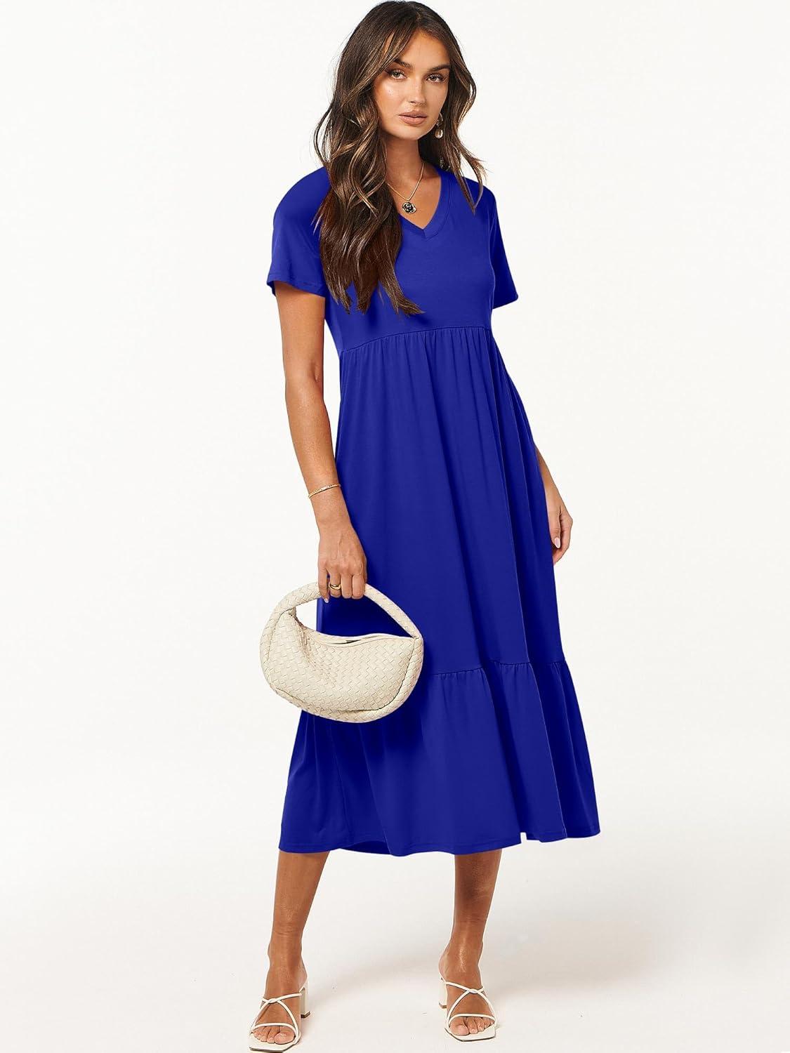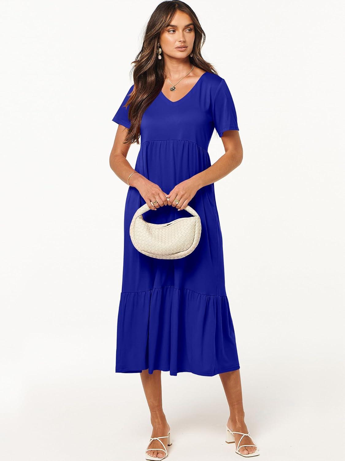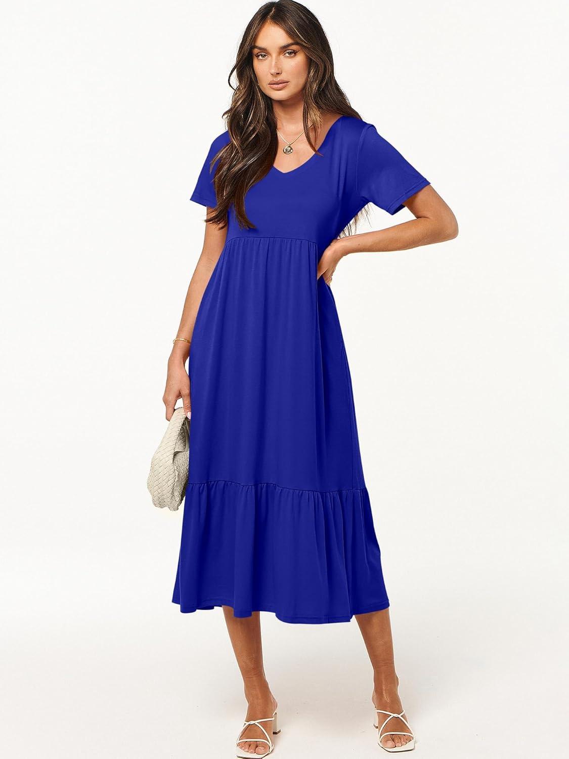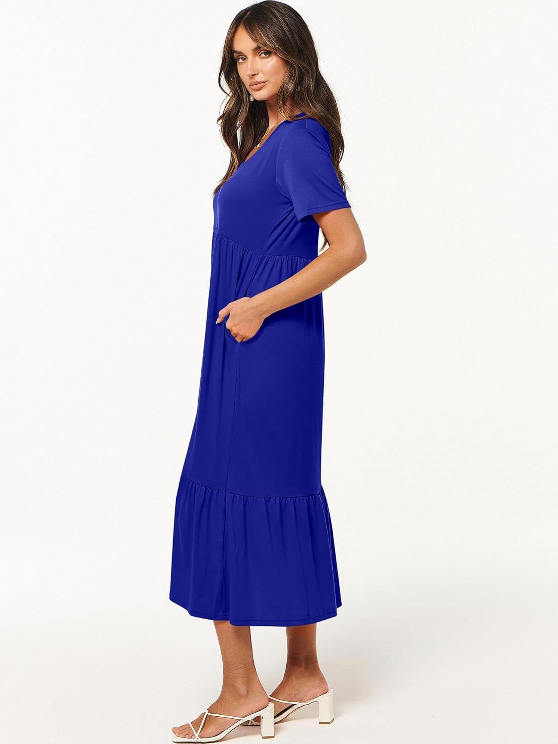 ANRABESS Women’s Summer Casual Short Sleeve T Shirts Maxi Dress Flowy V Neck Tiered Beach Vacation Sundress 2025 Outfits(Royal Blue)