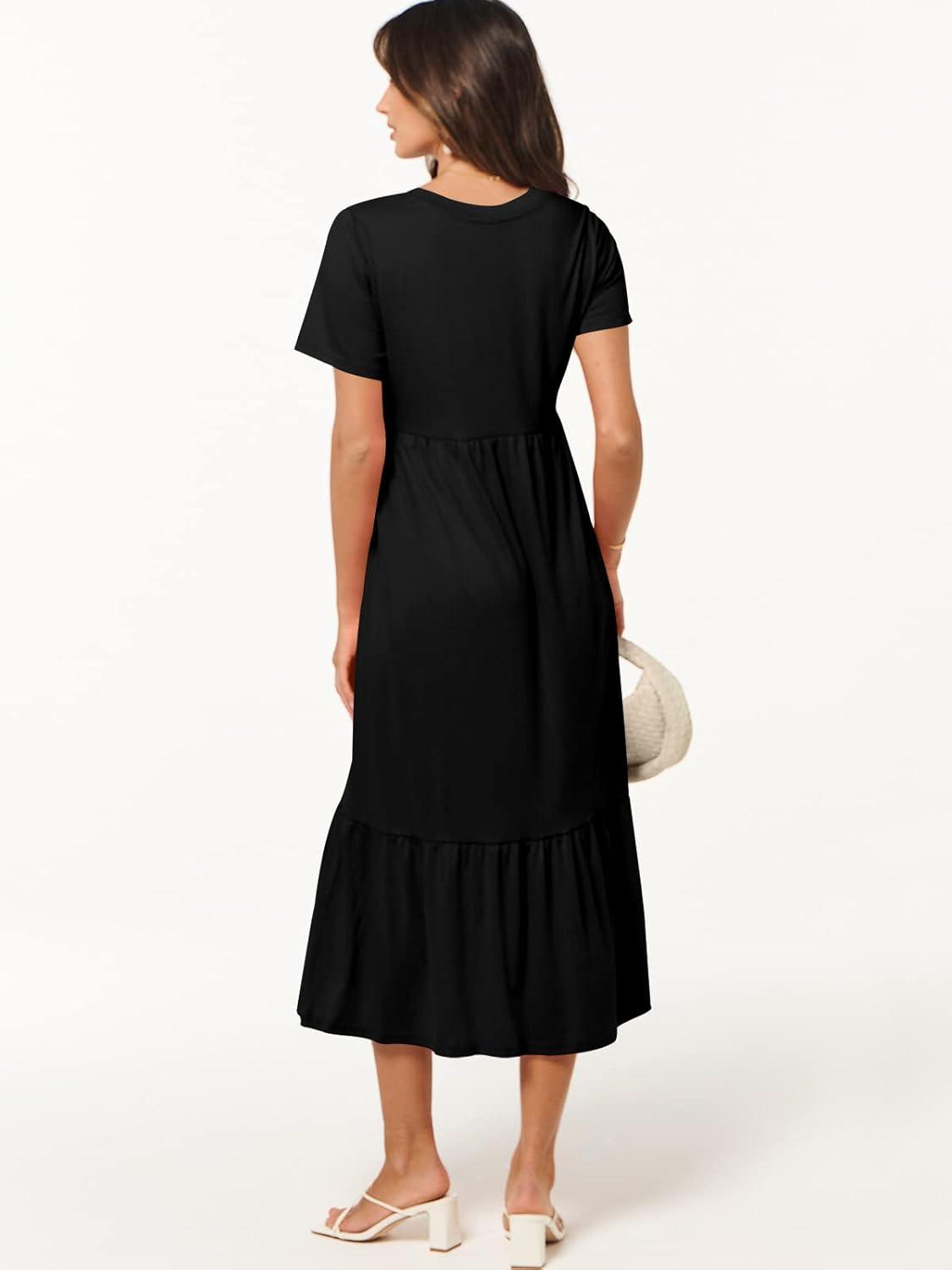 ANRABESS Women’s Summer Casual Short Sleeve T Shirts Maxi Dress Flowy V Neck Tiered Beach Vacation Sundress 2026 Outfits(Black)