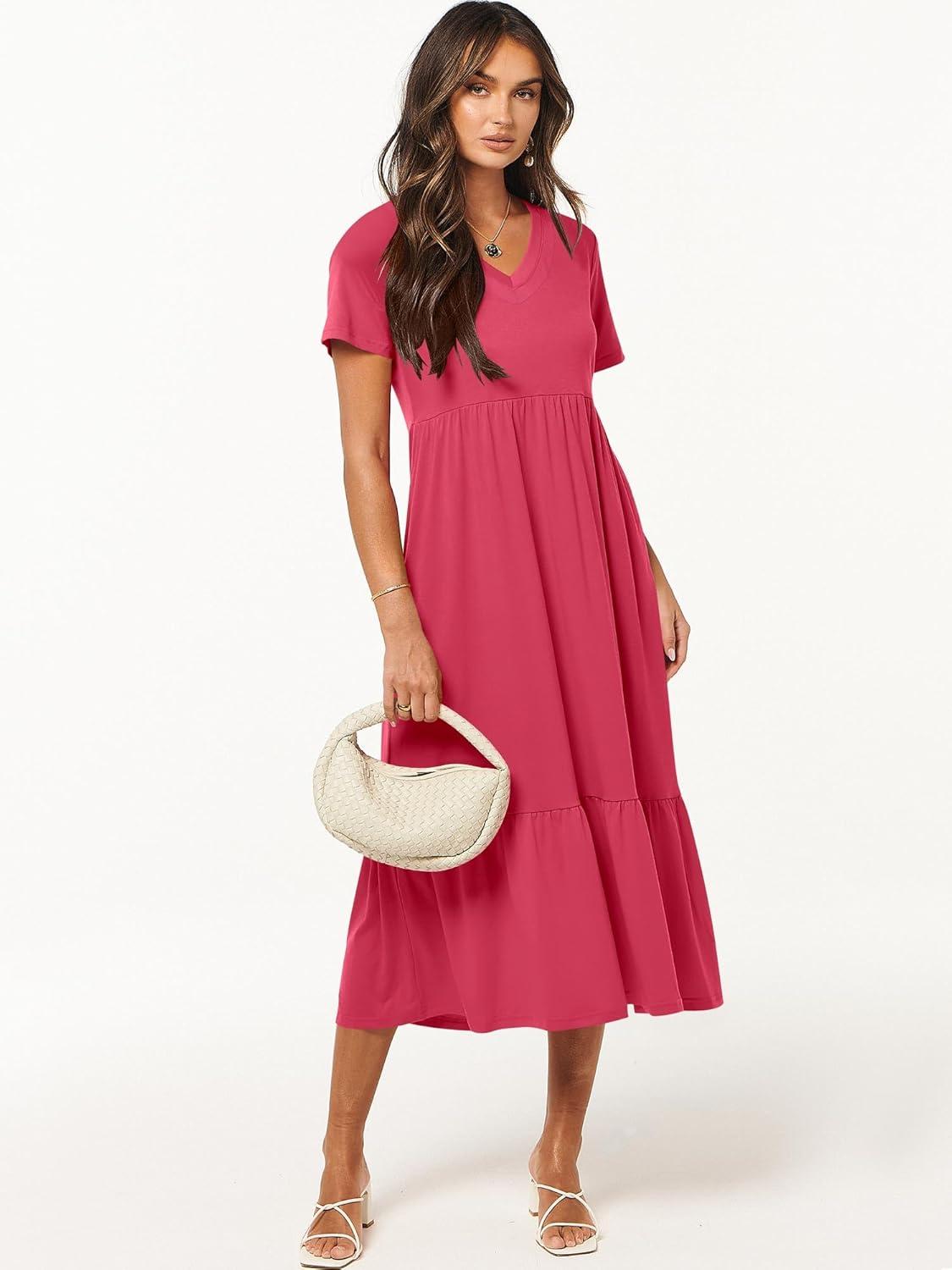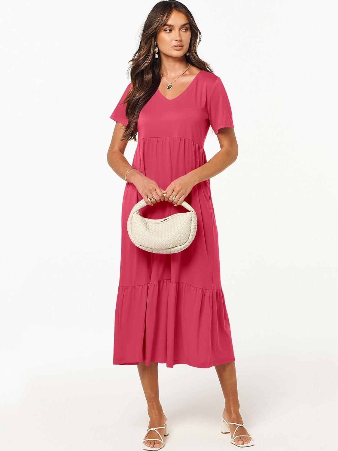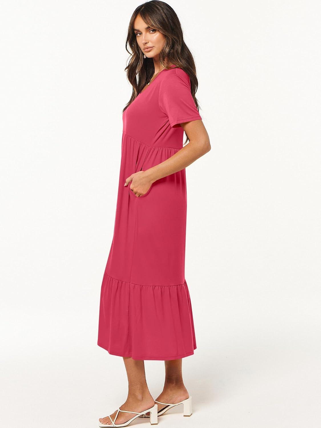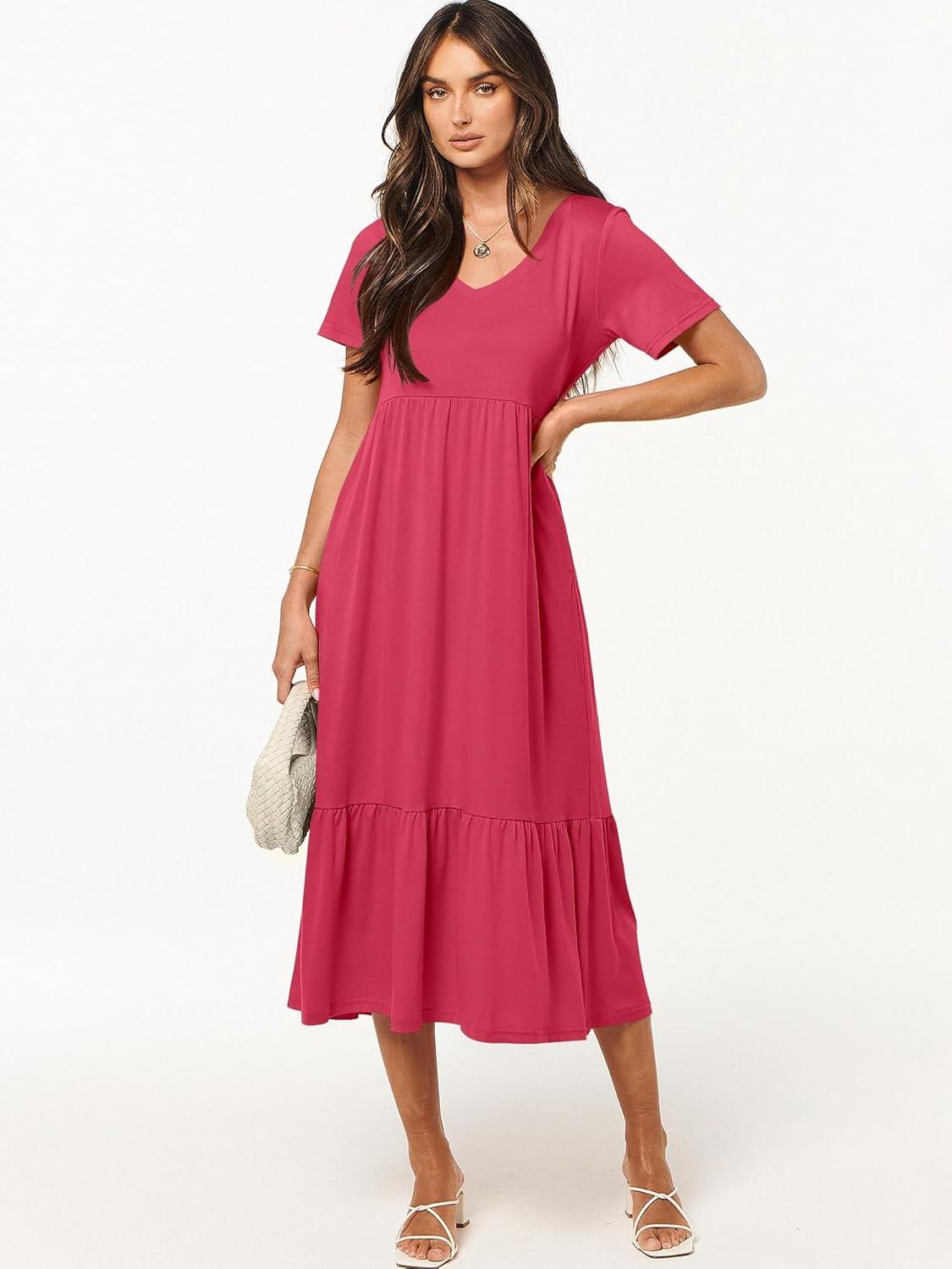 ANRABESS Women’s Summer Casual Short Sleeve T Shirts Maxi Dress Flowy V Neck Tiered Beach Vacation Sundress 2026 Outfits(Deep Green)