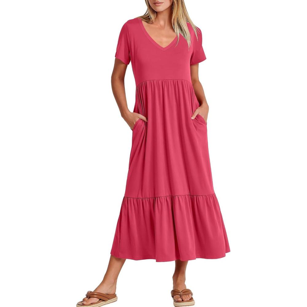 imageANRABESS Womens Summer Casual Short Sleeve T Shirts Maxi Dress Flowy V Neck Tiered Beach Vacation Sundress 2026 OutfitsPeach