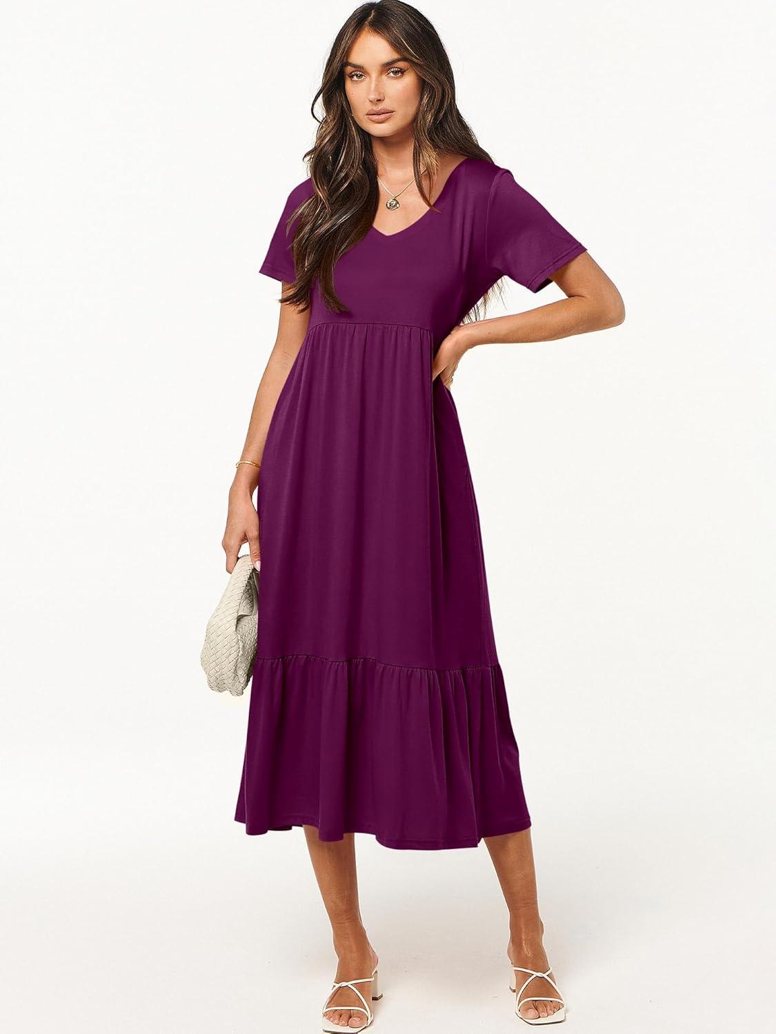 imageANRABESS Womens Summer Casual Short Sleeve T Shirts Maxi Dress Flowy V Neck Tiered Beach Vacation Sundress 2026 OutfitsPurple