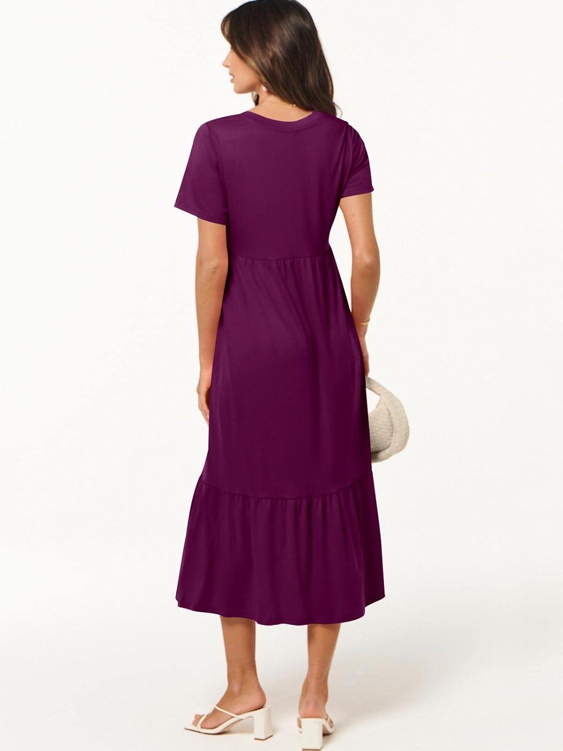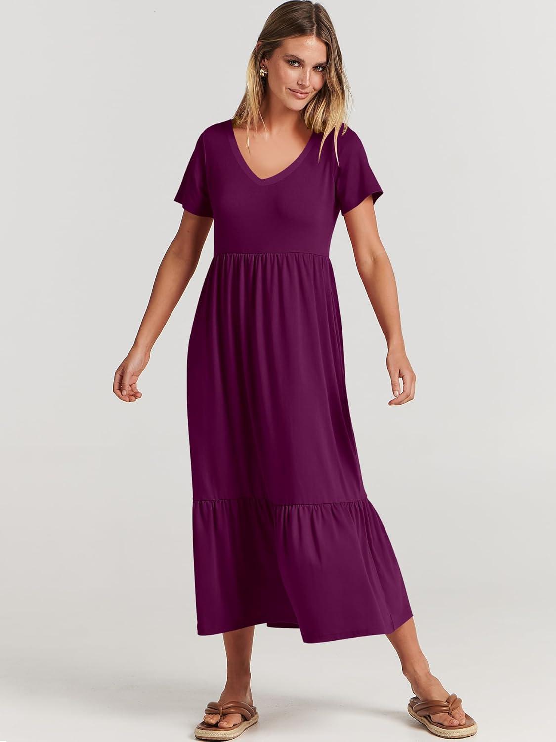 ANRABESS Women’s Summer Casual Short Sleeve T Shirts Maxi Dress Flowy V Neck Tiered Beach Vacation Sundress 2026 Outfits(Purple)
