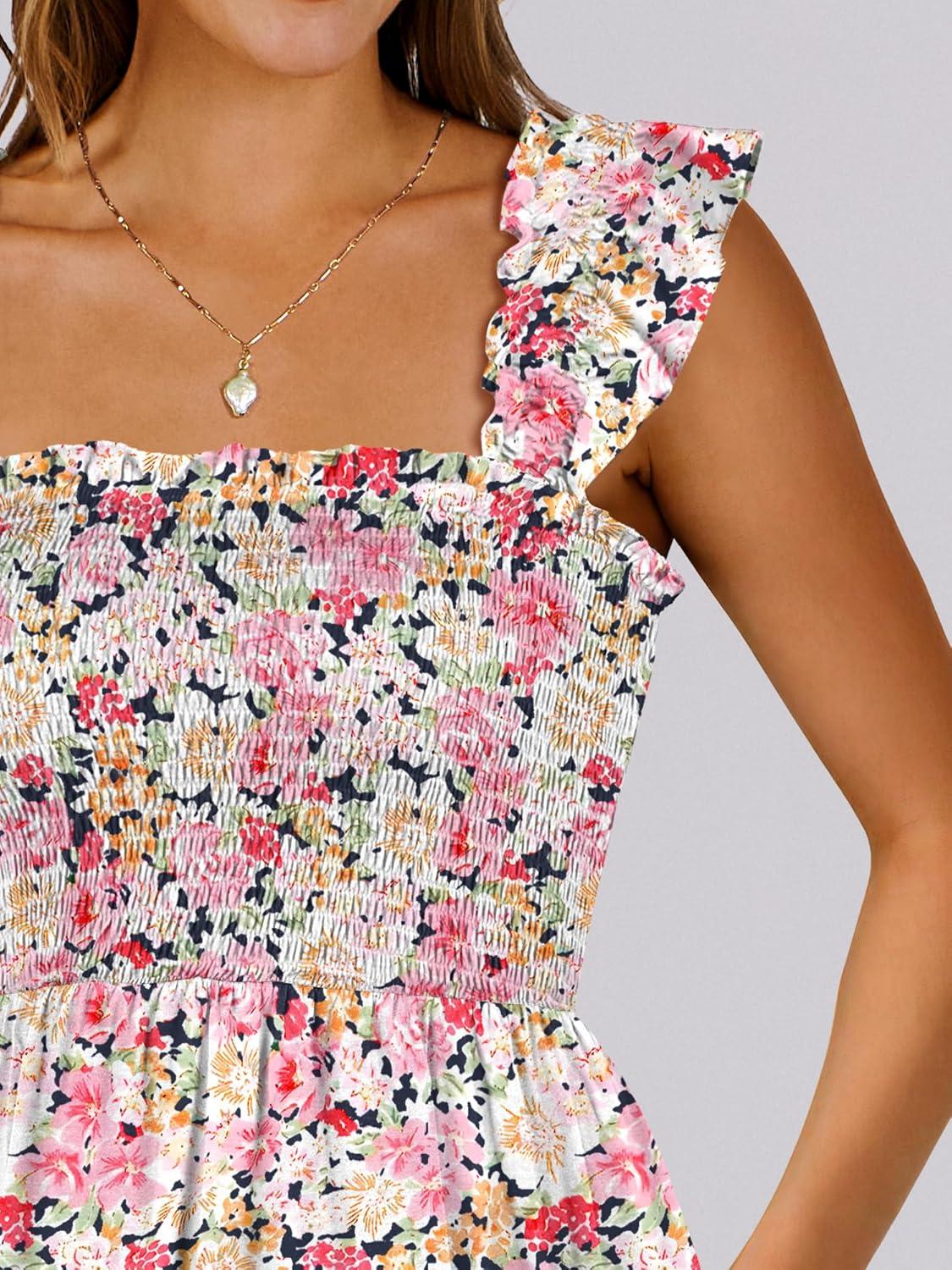 imageANRABESS Womens Summer Casual Sleeveless Square Neck Dress 2025 Smocked Ruffle Backless Boho Beach Cute Teen Short SundressPrint Floral