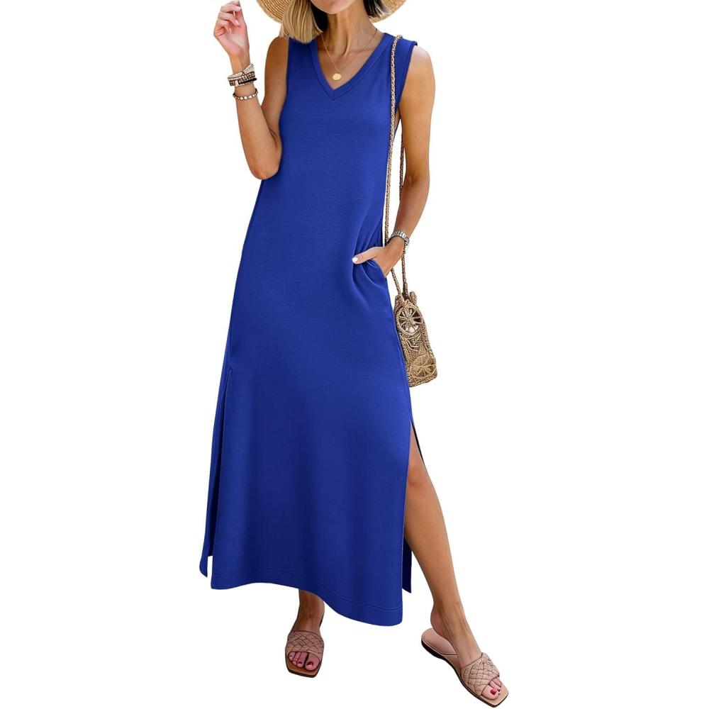 imageANRABESS Womens Summer Casual V Neck Sleeveless Tank Maxi Dress Split WrinkleFree Beach Vacation Sundress Cruise OutfitsRoyal Blue