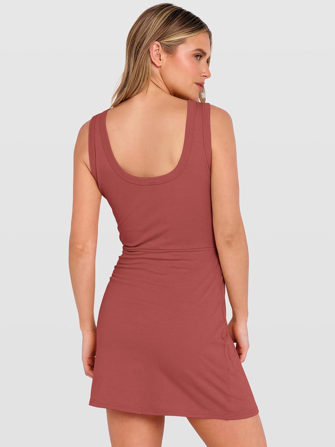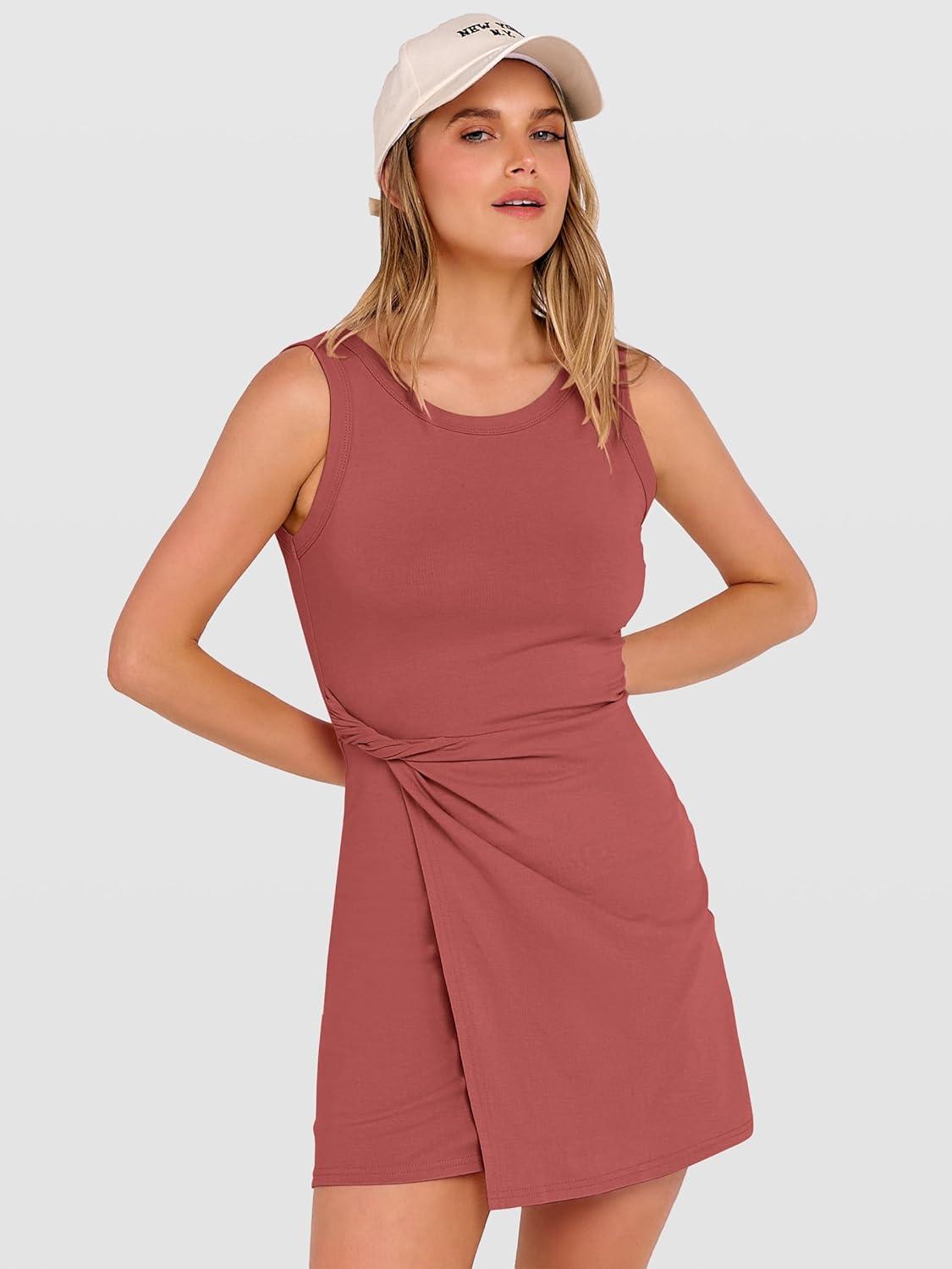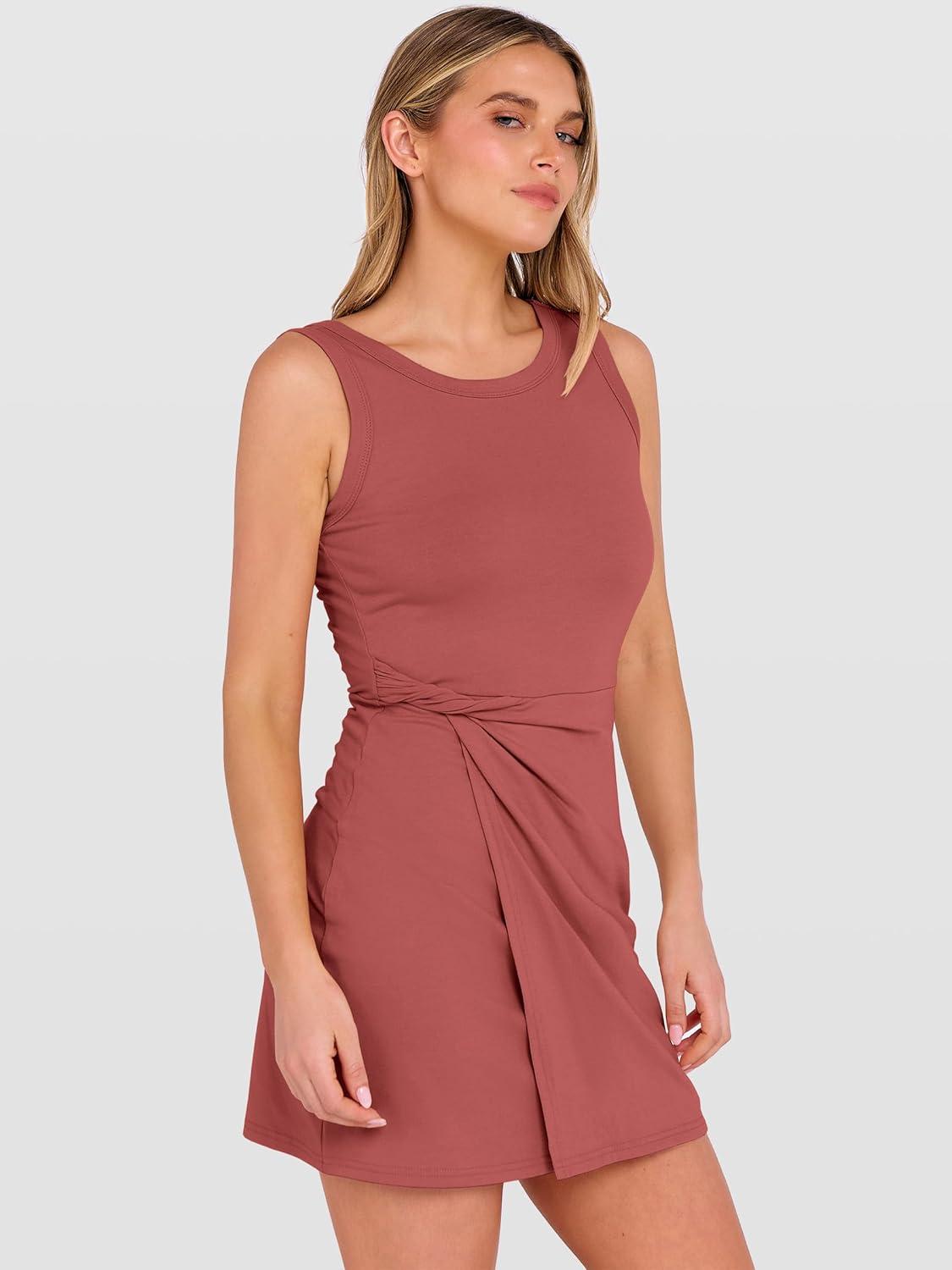 ANRABESS Womens Summer Dress 2026 Athletic Romper Skort Sleeveless Twist Waist Bodycon Night Out Mini Dress Built in Shorts(Rust Red)