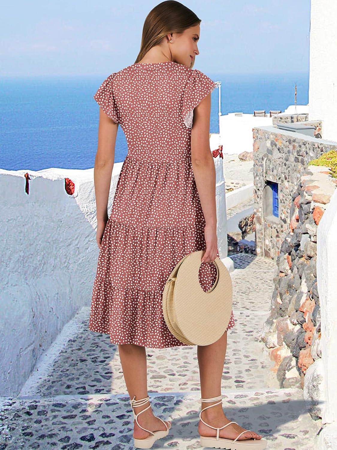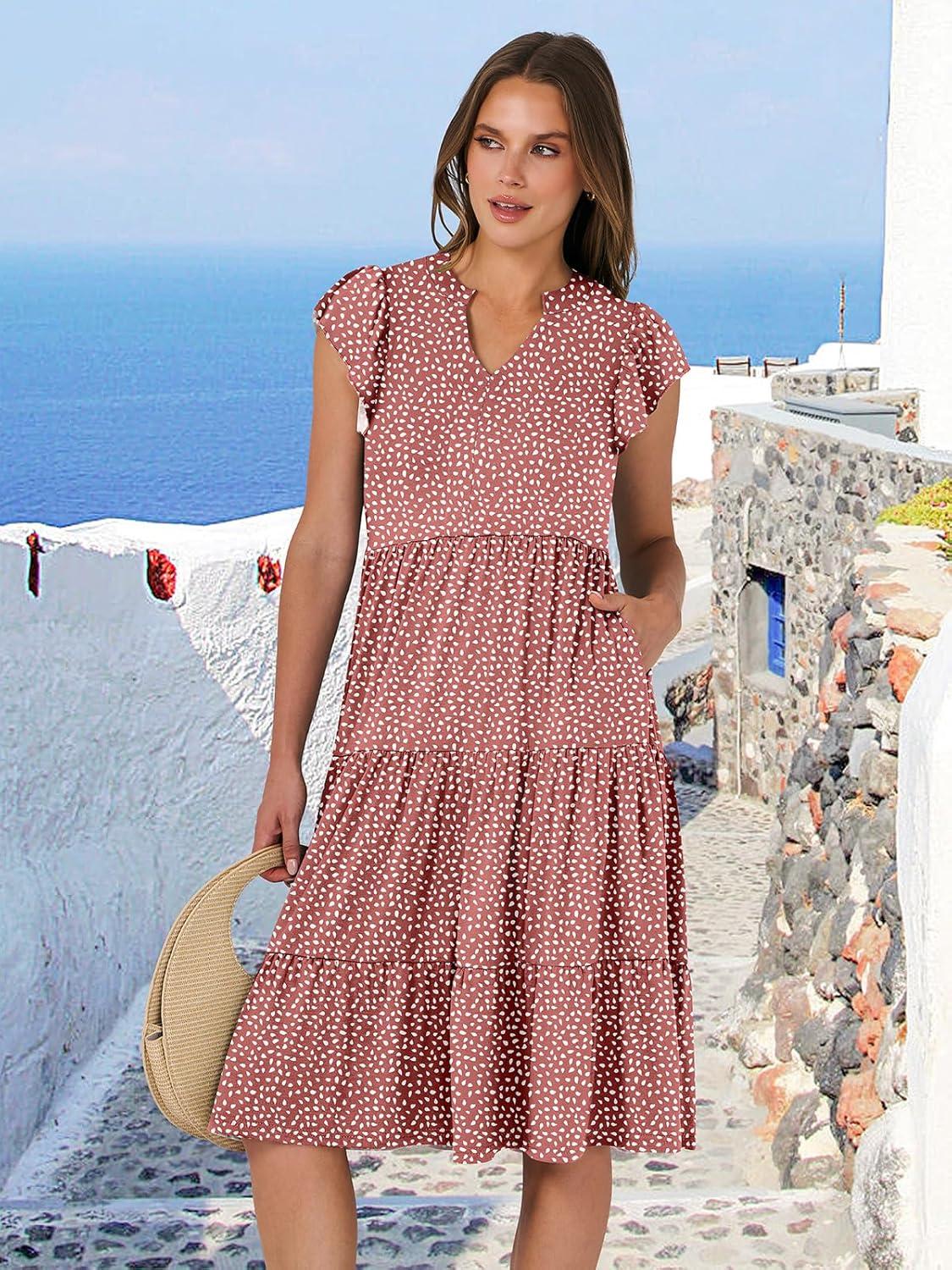 imageANRABESS Womens Summer Dress Ruffle Sleeve V Neck Midi Dresses Fashion Casual Fit Flowy Tiered Boho Beach Vacation SundressRust Red White Dot