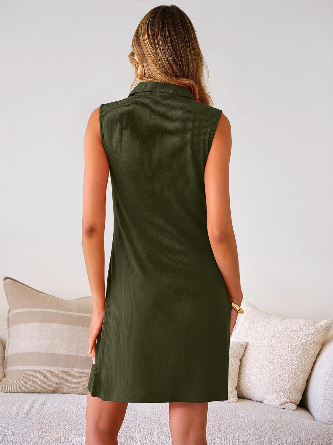 imageANRABESS Womens Summer Dresses Casual Sleeveless Ribbed Half Zip Polo Collar Tshirt Dress 2026 Spring Tunics Short SundressArmy Green