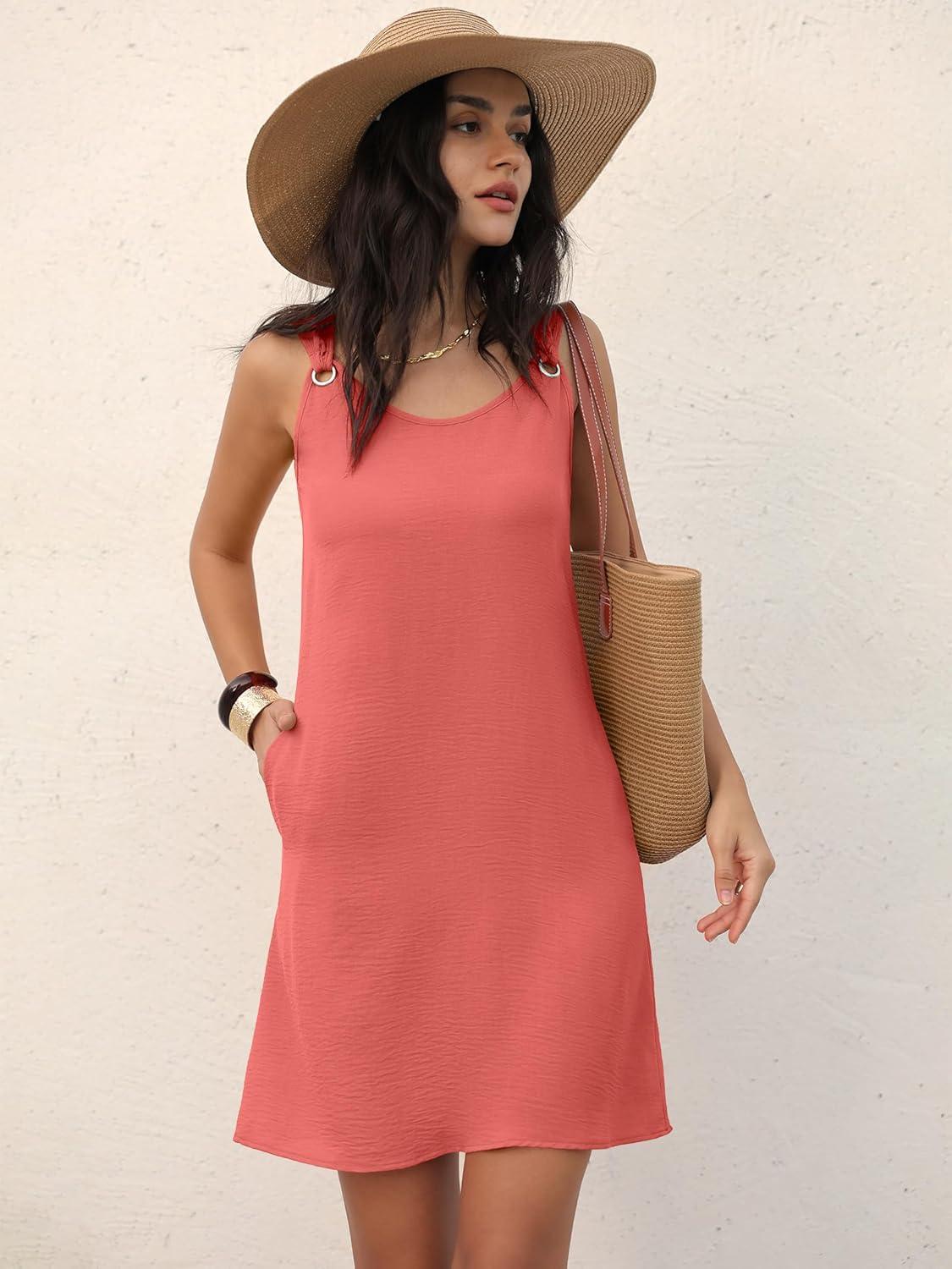 ANRABESS Womens Summer Dresses Sleeveless Beach Cover Ups Swimsuit Casual Sundress 2026 Boho Cruise Vacation Tank Short Dress(Orange Red)