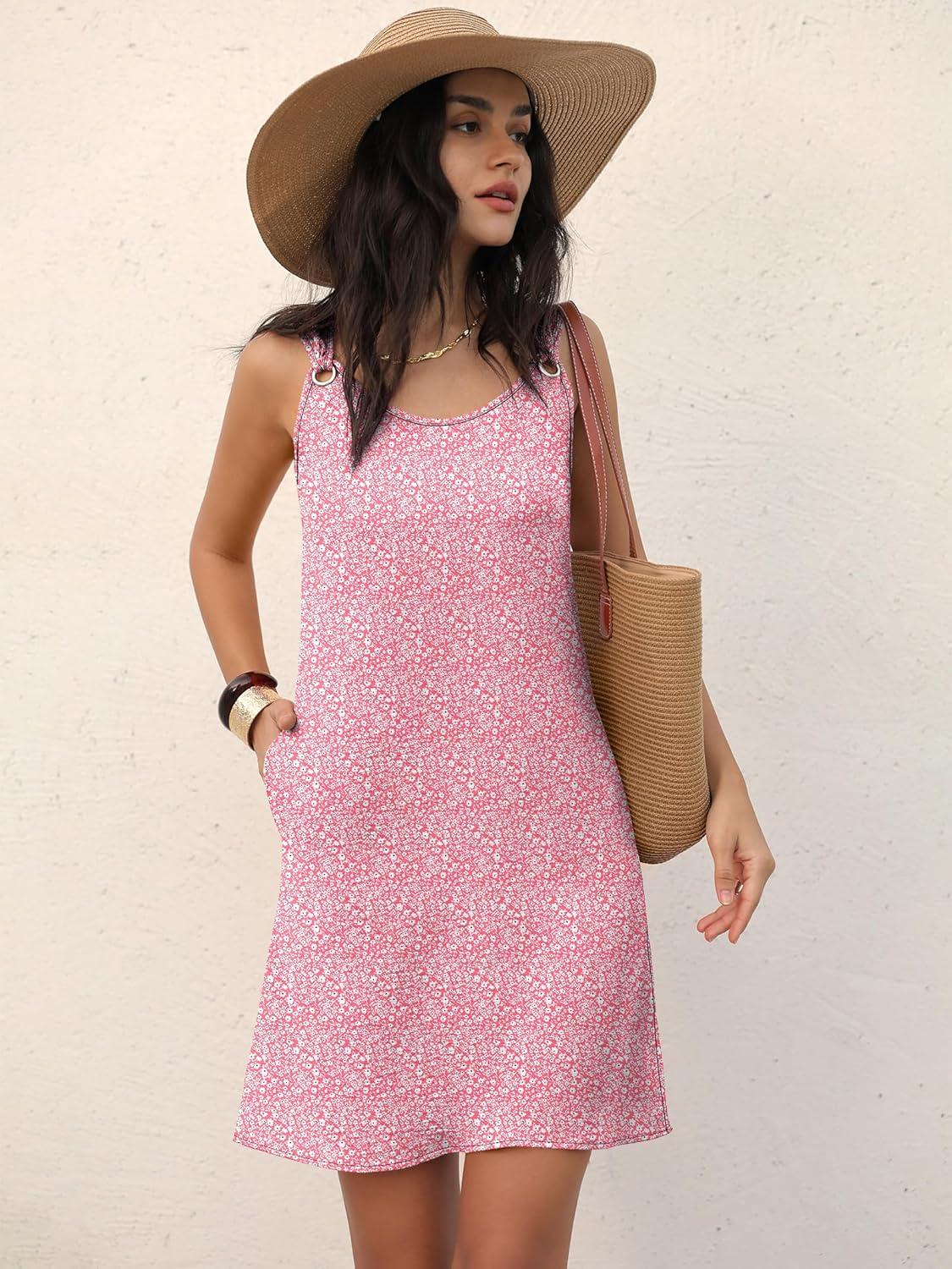 ANRABESS Womens Summer Dresses Sleeveless Beach Cover Ups Swimsuit Casual Sundress 2026 Boho Cruise Vacation Tank Short Dress(Pink Floral)