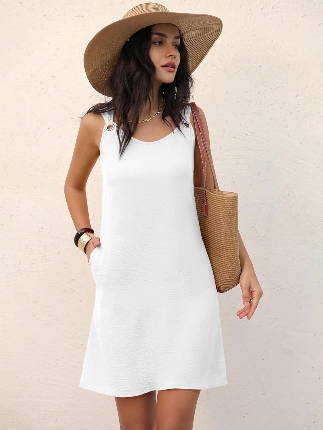 ANRABESS Womens Summer Dresses Sleeveless Beach Cover Ups Swimsuit Casual Sundress 2026 Boho Cruise Vacation Tank Short Dress(White)