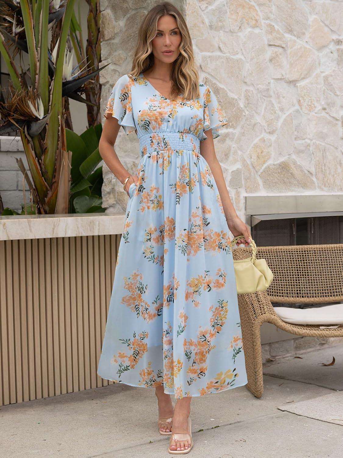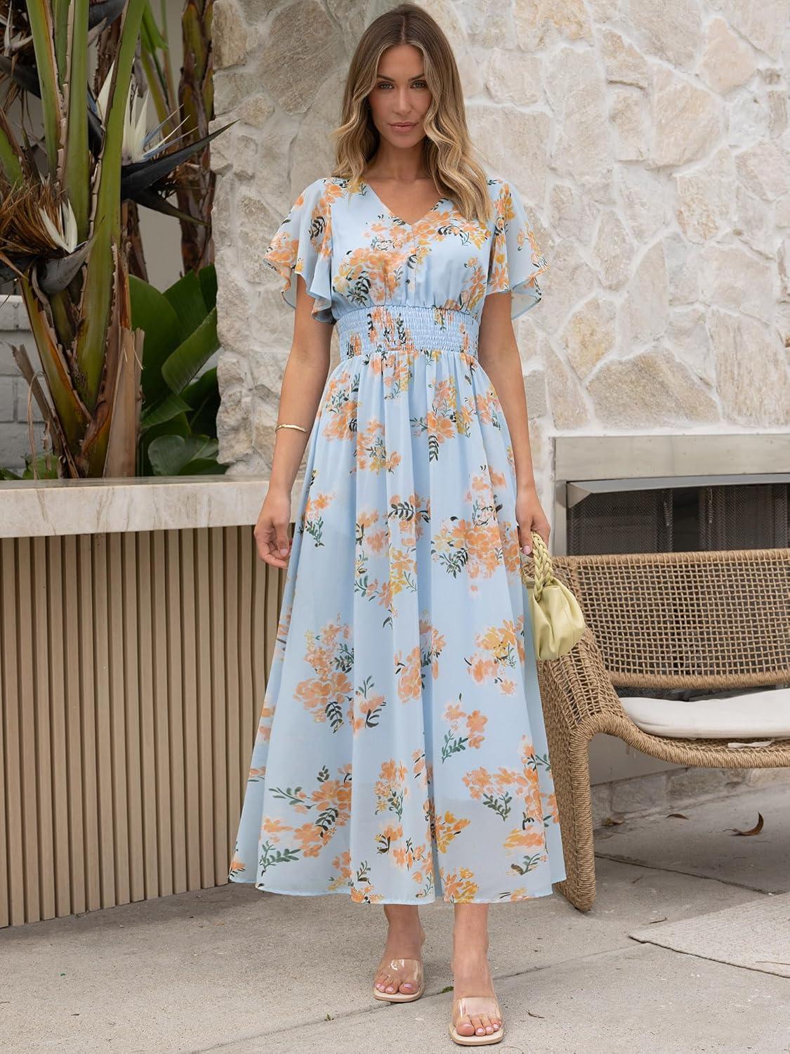 imageANRABESS Womens Summer Floral Maxi Dress Casual V Neck Short Sleeve Chiffon Boho Flowy Beach 2025 Wedding Guest Long DressesOrange Floral Print