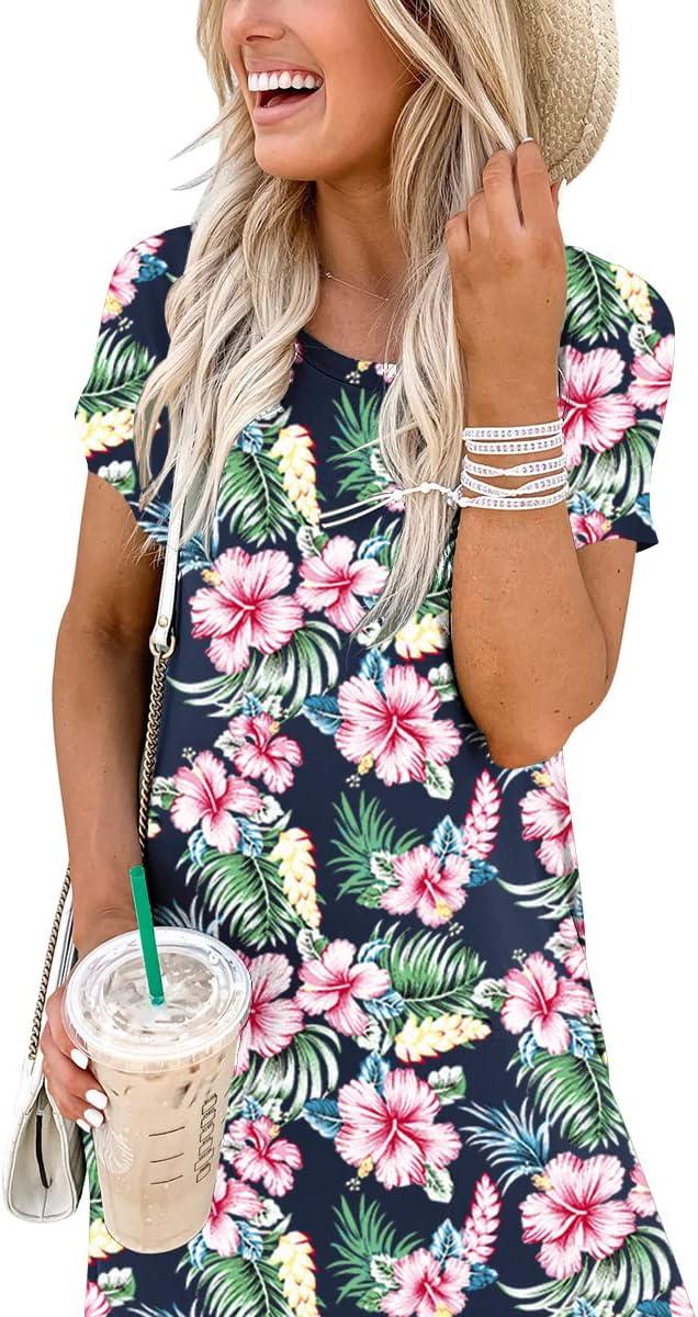 ANRABESS Womens Summer Maxi Dress Short Sleeve Casual Loose Long T Shirt Dresses Split Vacation Beach Sundress Travel Outfits(Floral Cyan)