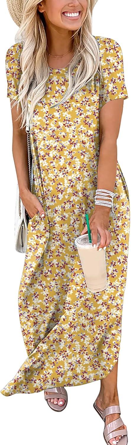 imageANRABESS Womens Summer Maxi Dress Short Sleeve Casual Loose Long T Shirt Dresses Split Vacation Beach Sundress Travel OutfitsFloral Yellow
