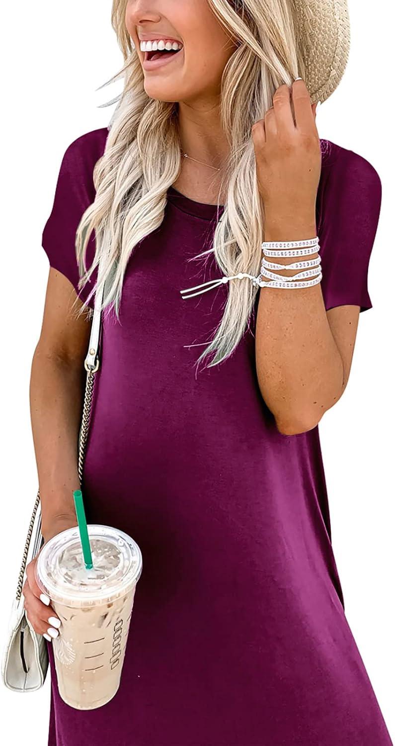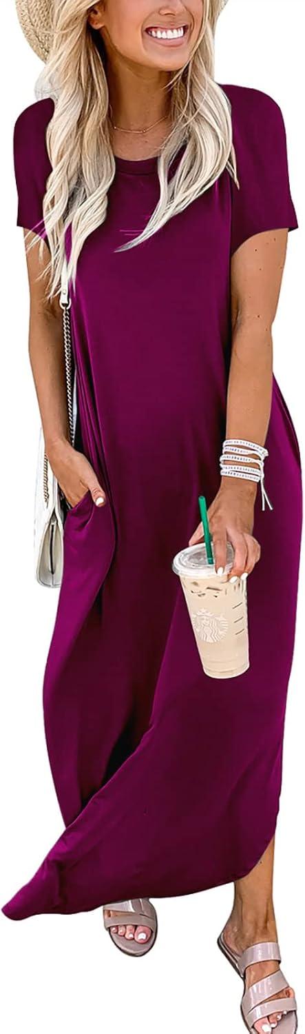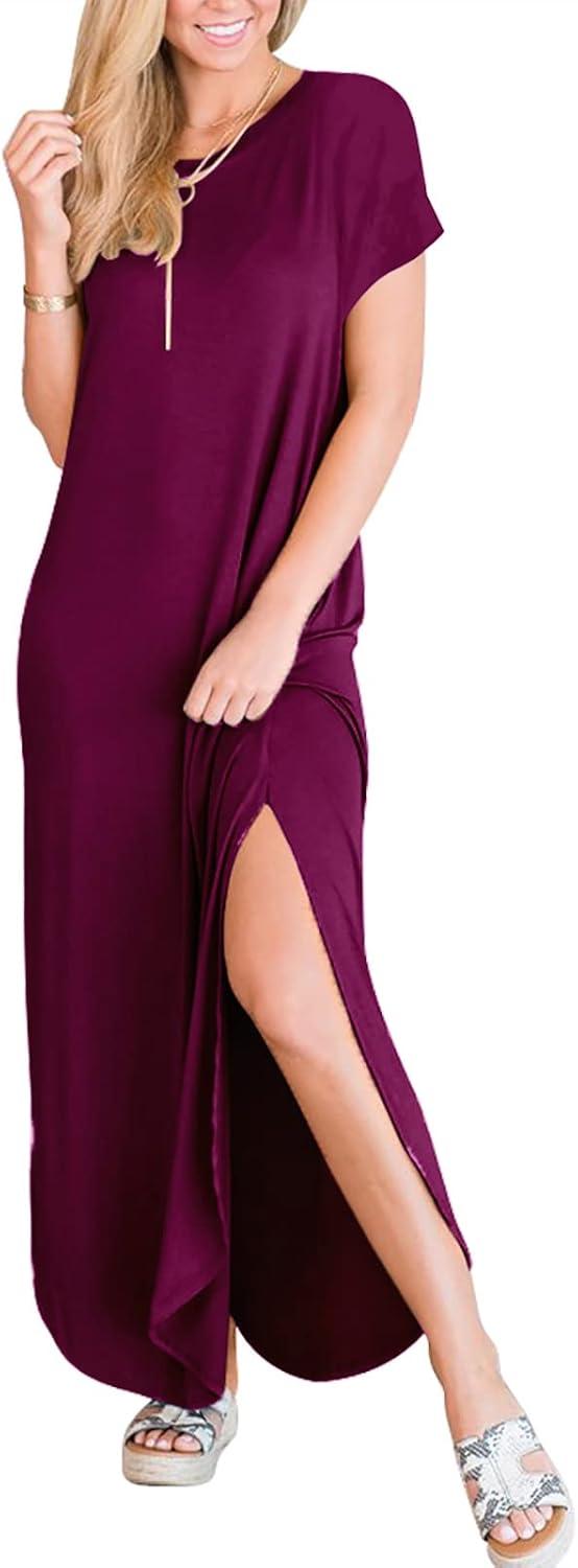 ANRABESS Womens Summer Maxi Dress Short Sleeve Casual Loose Long T Shirt Dresses Split Vacation Beach Sundress Travel Outfits(Purple)