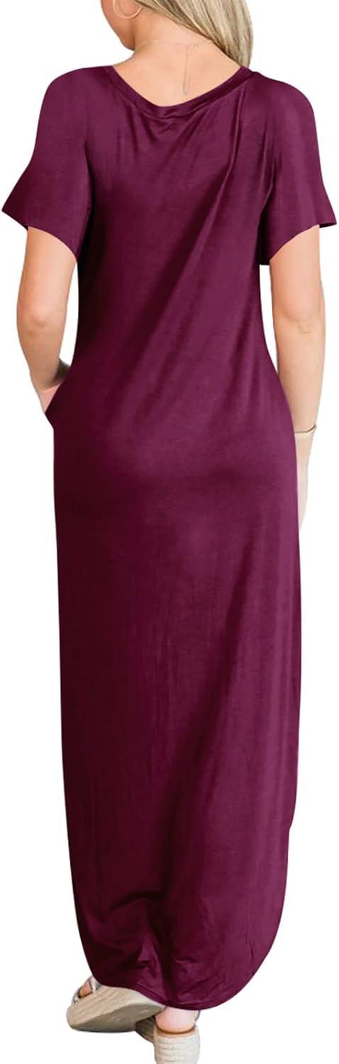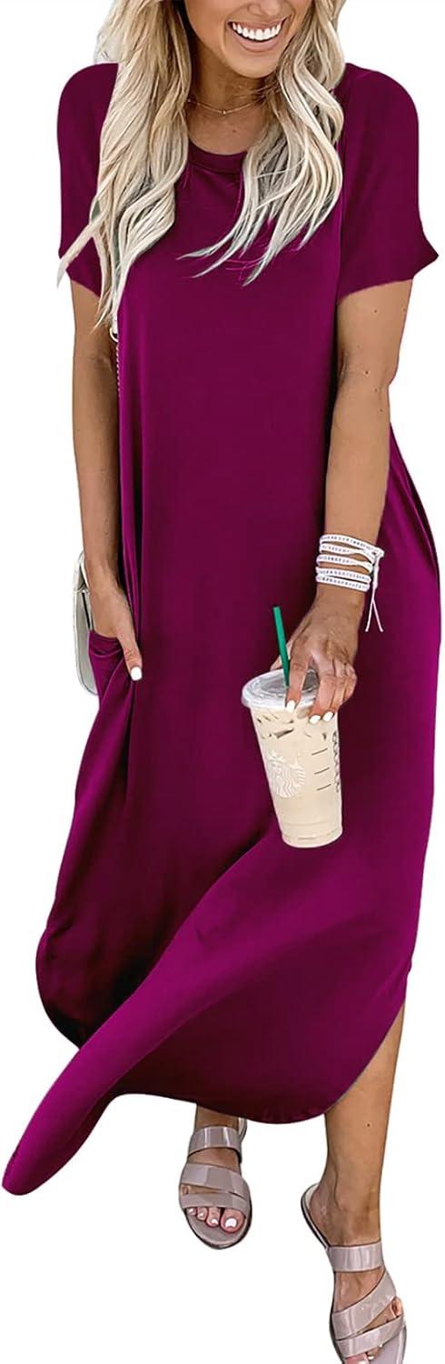 ANRABESS Womens Summer Maxi Dress Short Sleeve Casual Loose Long T Shirt Dresses Split Vacation Beach Sundress Travel Outfits(Pink)