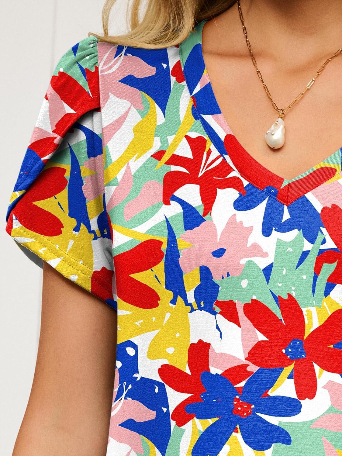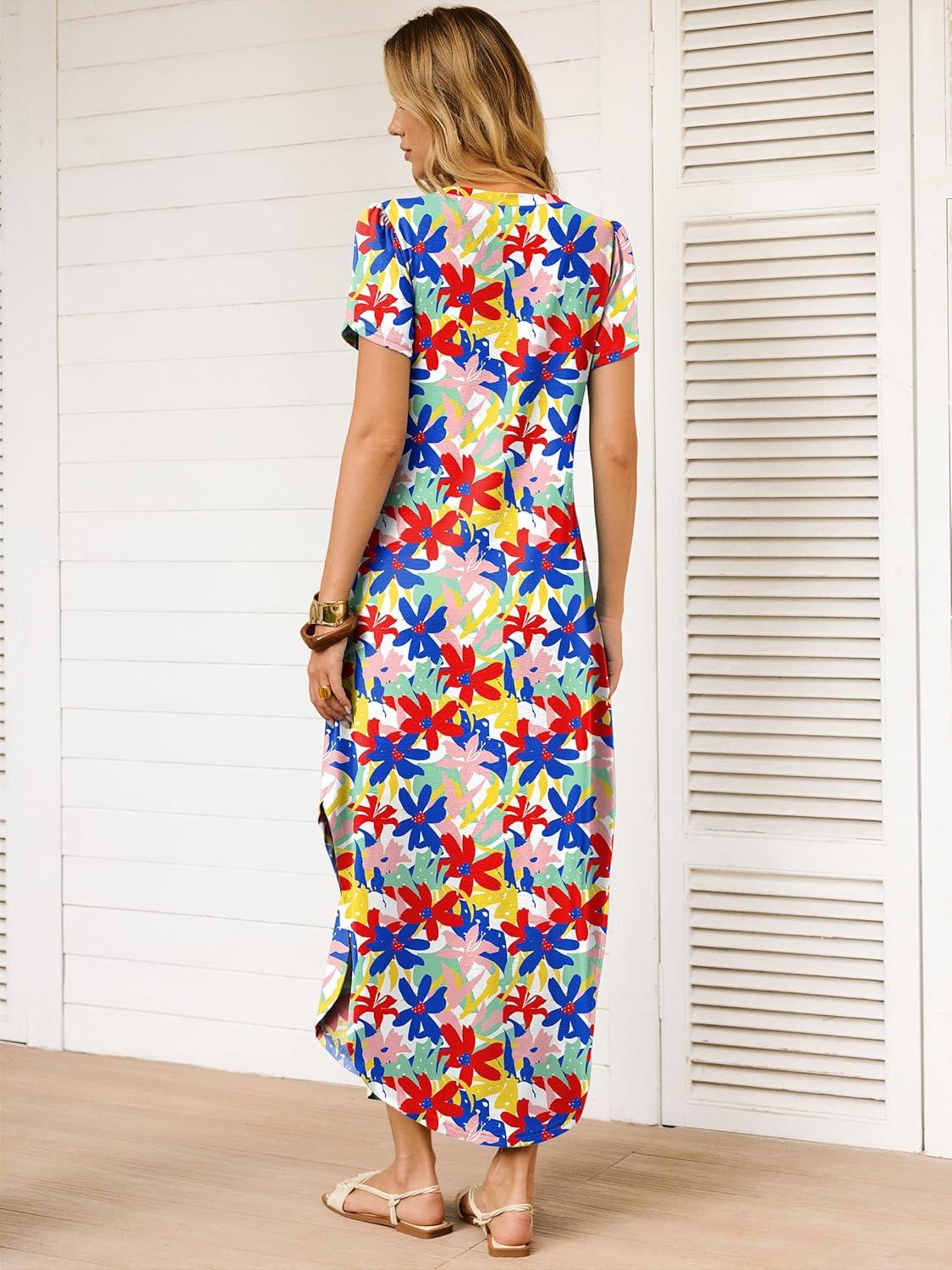 ANRABESS Womens Summer Maxi Dresses 2026 Casual Short Sleeve V Neck Loose Split Long Beach Sundress Travel Vacation Clothes(Multicoloured Floral)