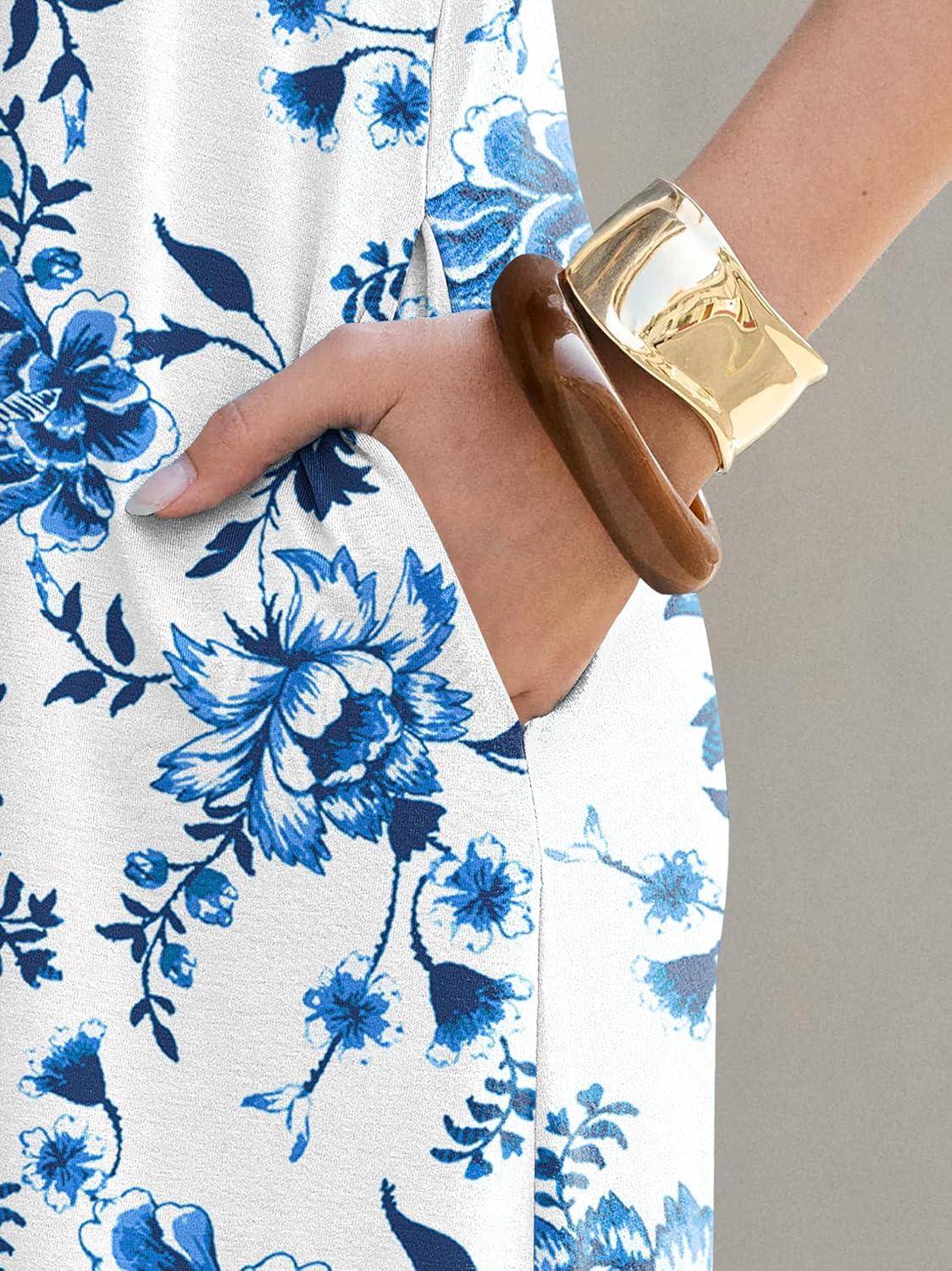 ANRABESS Womens Summer Maxi Dresses 2026 Casual Short Sleeve V Neck Loose Split Shirt Sun Dress Beach Vacation Clothes(Blue White Green Floral)