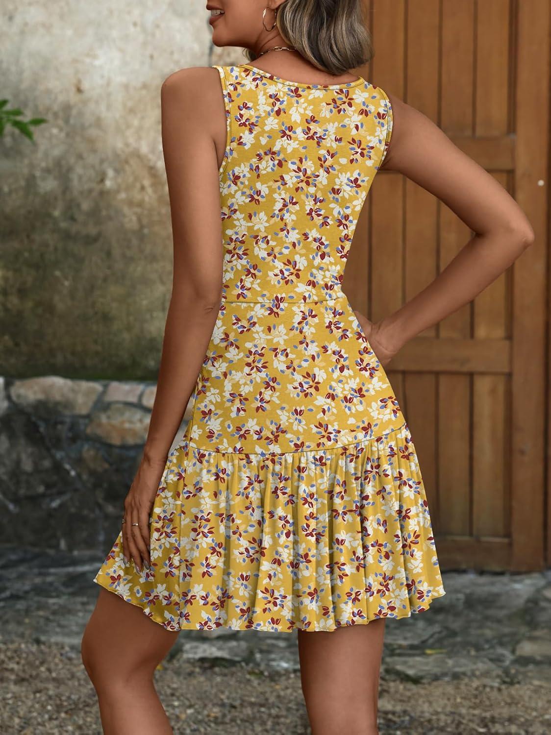ANRABESS Women's Summer Mini Dress 2026 Sleeveless Sexy Wrap V Neck A-Line Boho Floral Sundress Casual Flowy Beach Dresses(Floral Yellow)