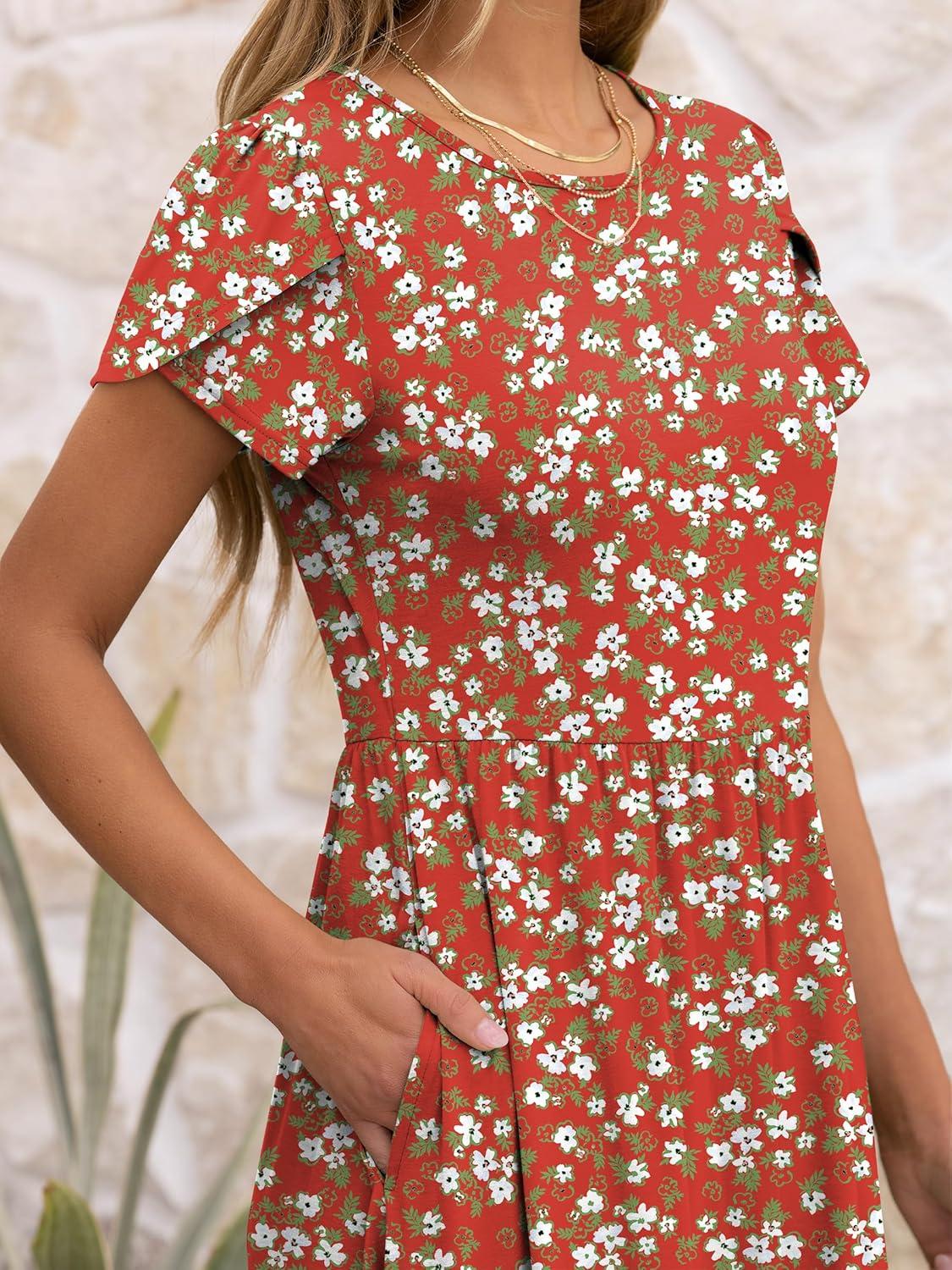 ANRABESS Women’s Summer Short Sleeve A-Line Midi Dresses Casual Floral T-Shirt Dresses Flowy Beach Sundress with Pockets(Print Floral)