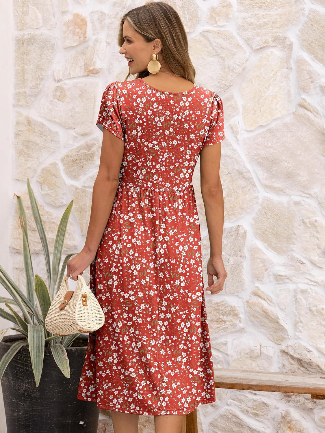 imageANRABESS Womens Summer Short Sleeve ALine Midi Dresses Casual Floral TShirt Dresses Flowy Beach Sundress with PocketsRed Floral