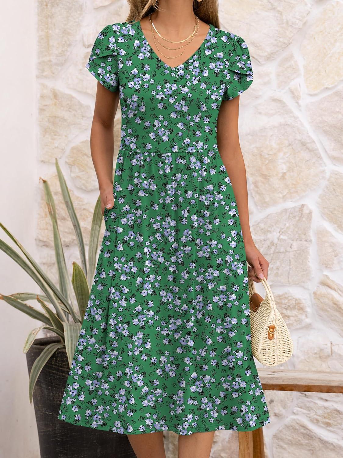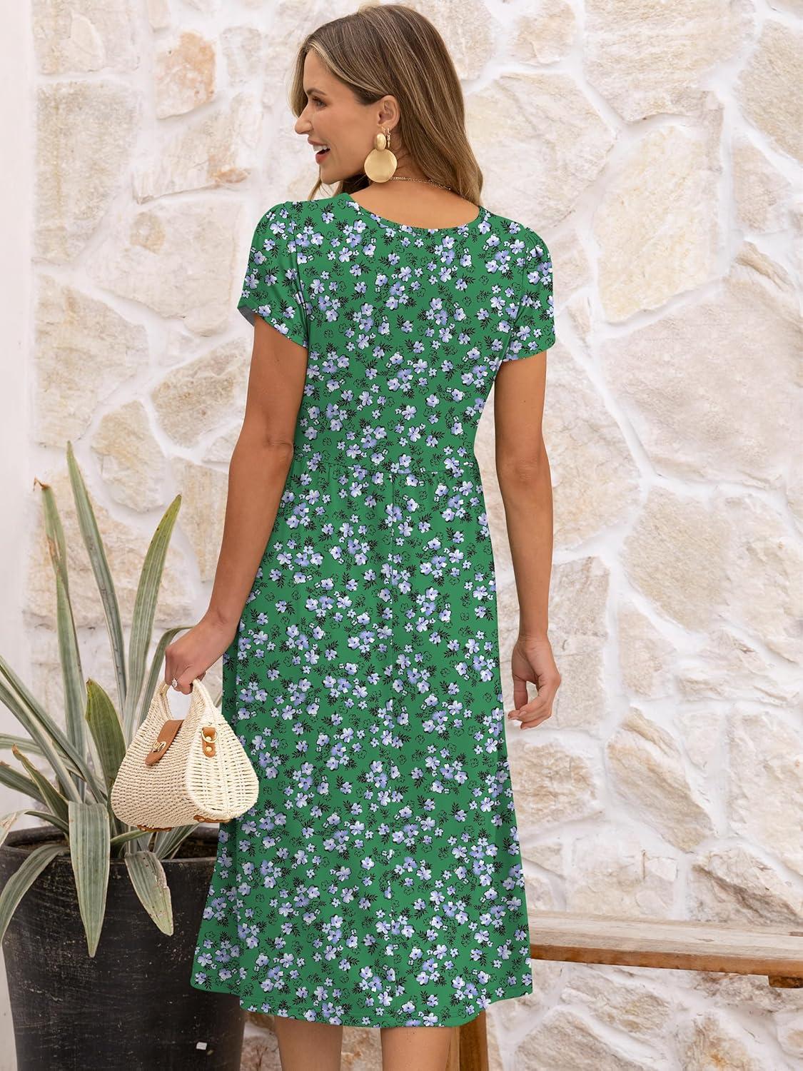 imageANRABESS Womens Summer Short Sleeve Midi Dresses Casual Floral TShirt Dress V Neck ALine Flowy Beach Sundress with PocketsPrint Blue Yellow Floral