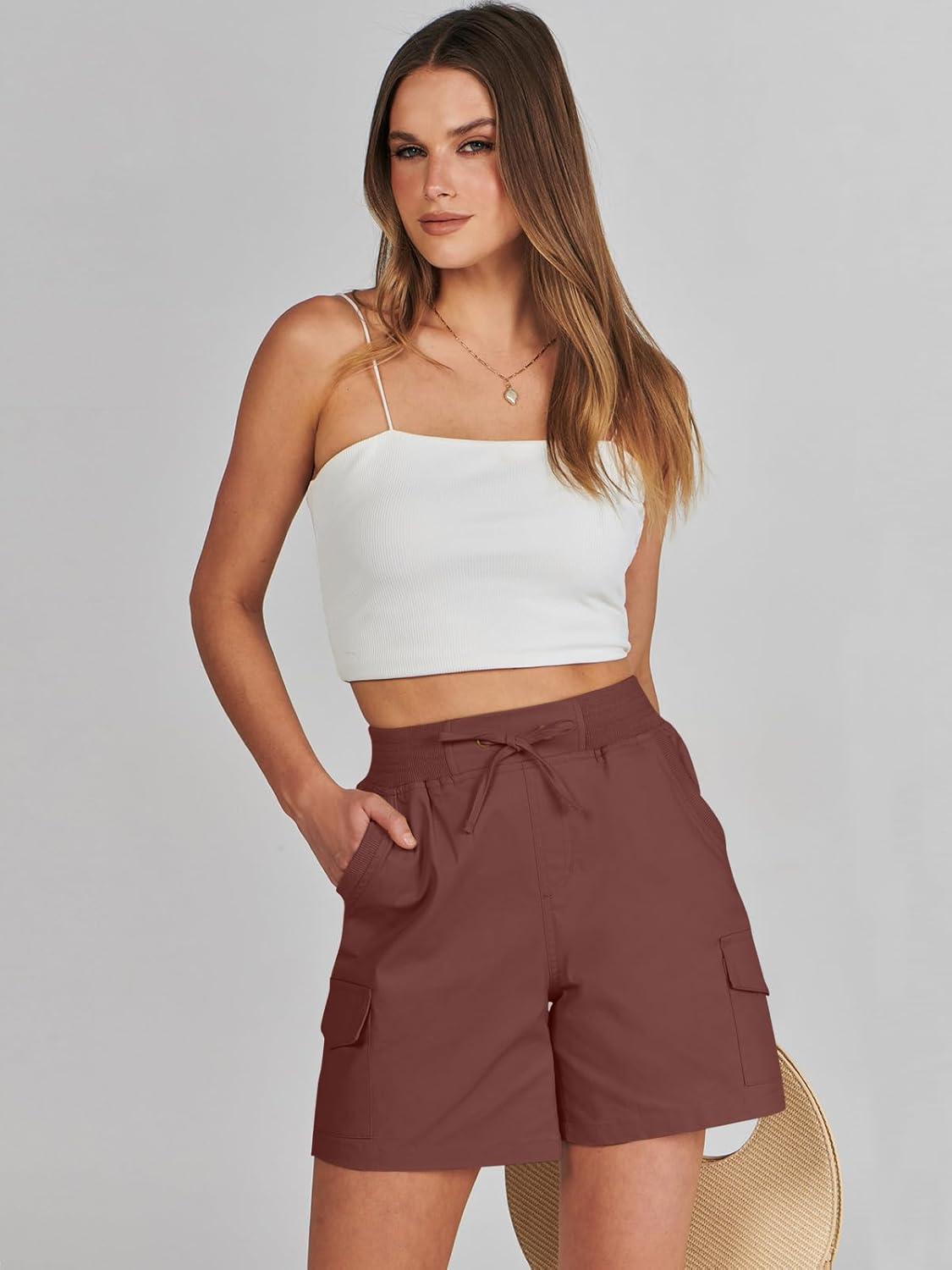 imageANRABESS Womens Summer Shorts 2025 Dressy Casual Hiking Cargo Shorts Trendy Outdoor Outfits 6 PocketsBrown Red