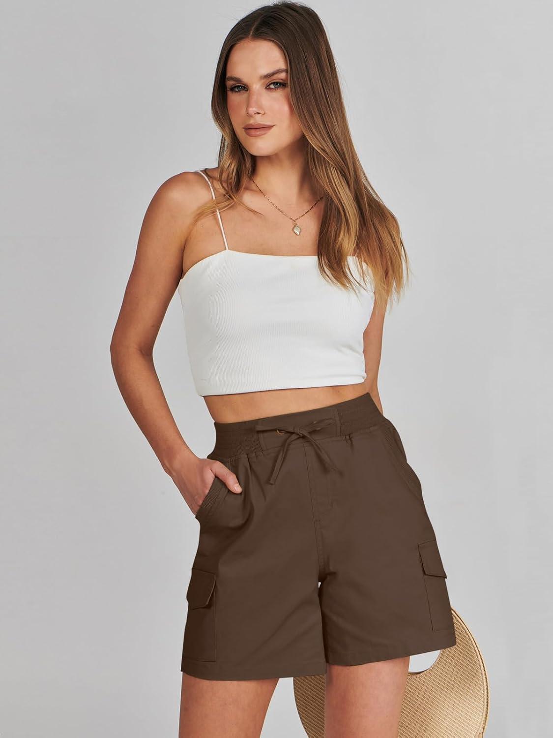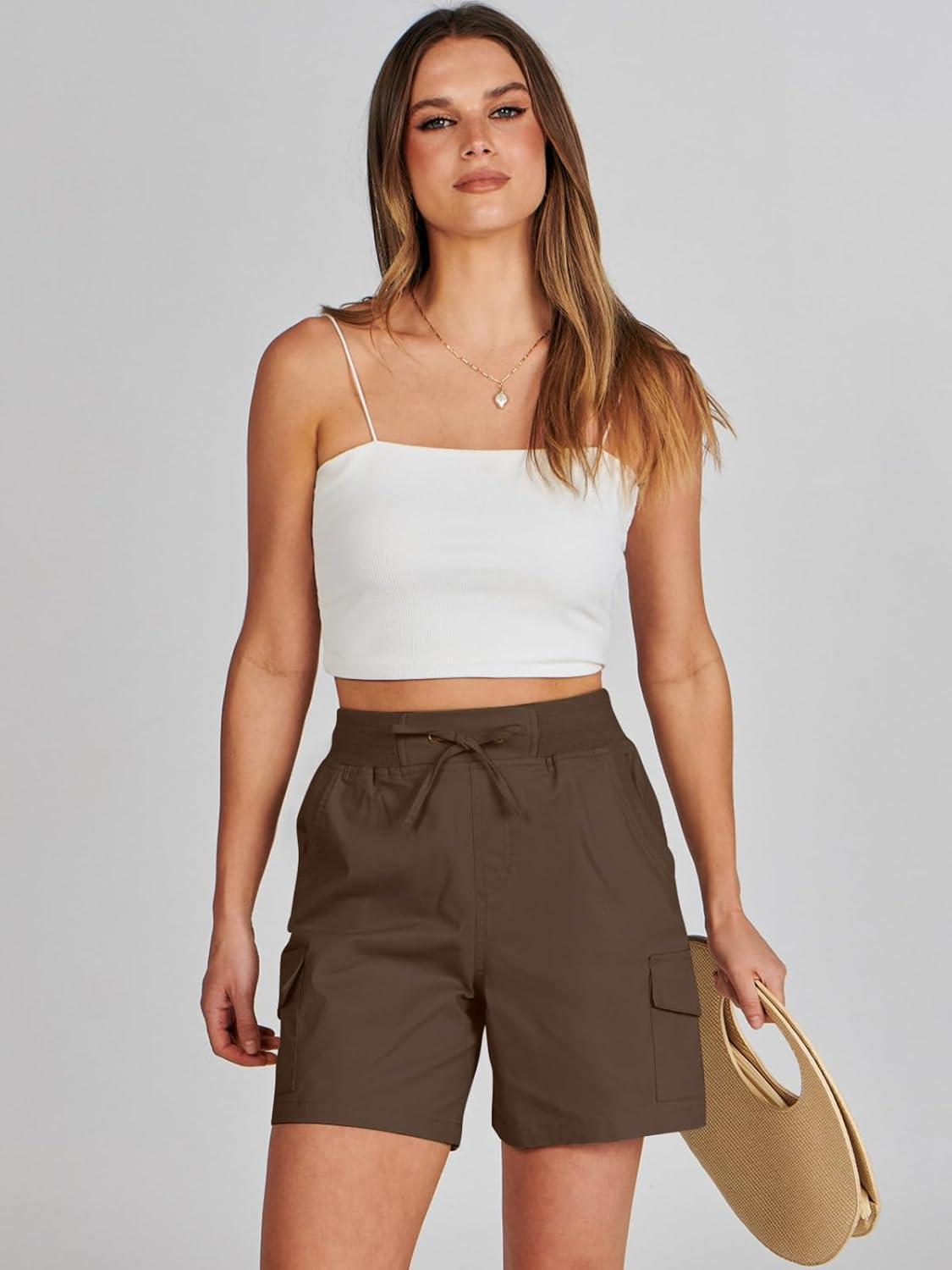 imageANRABESS Womens Summer Shorts 2025 Dressy Casual Hiking Cargo Shorts Trendy Outdoor Outfits 6 PocketsBrown