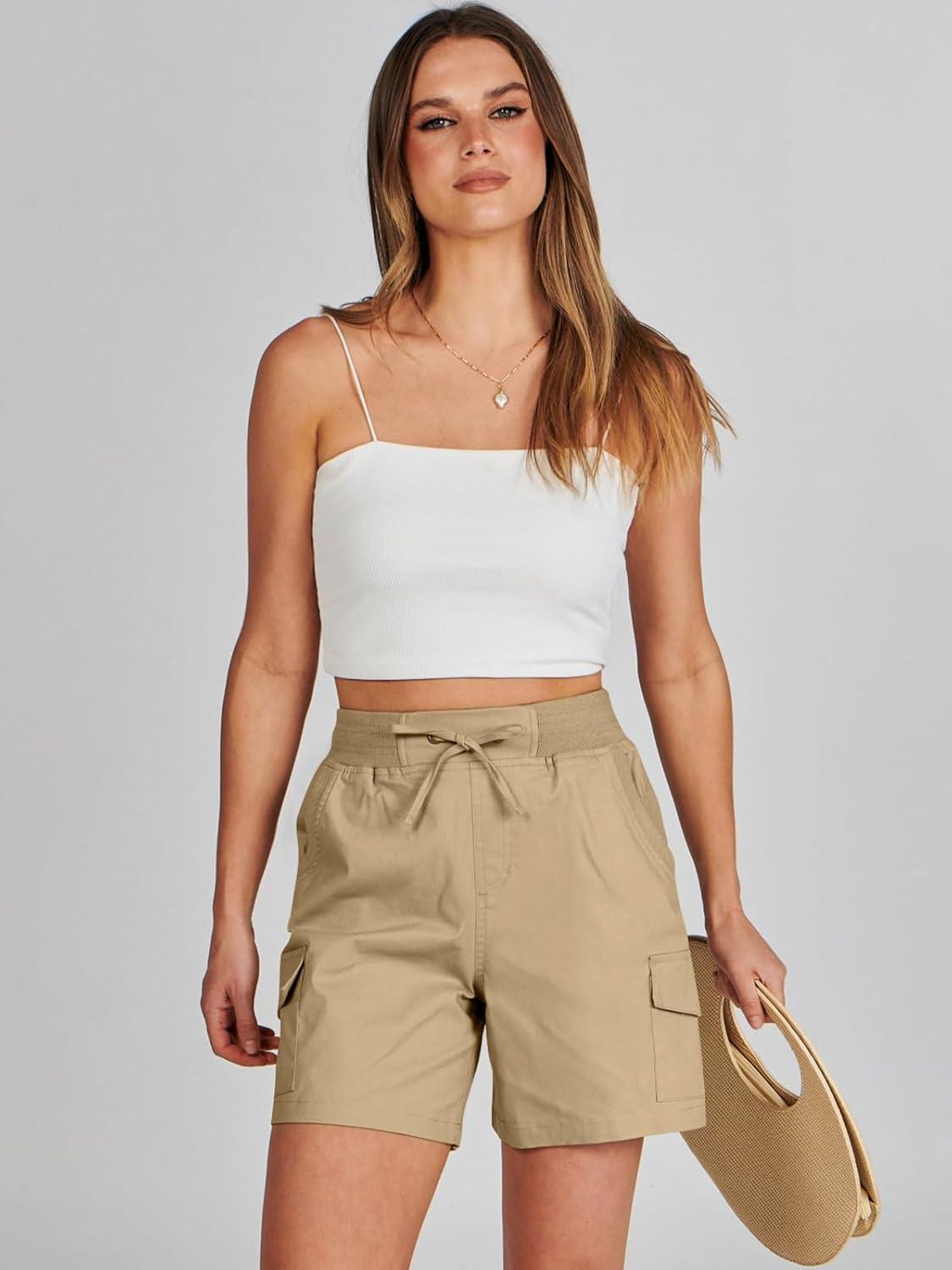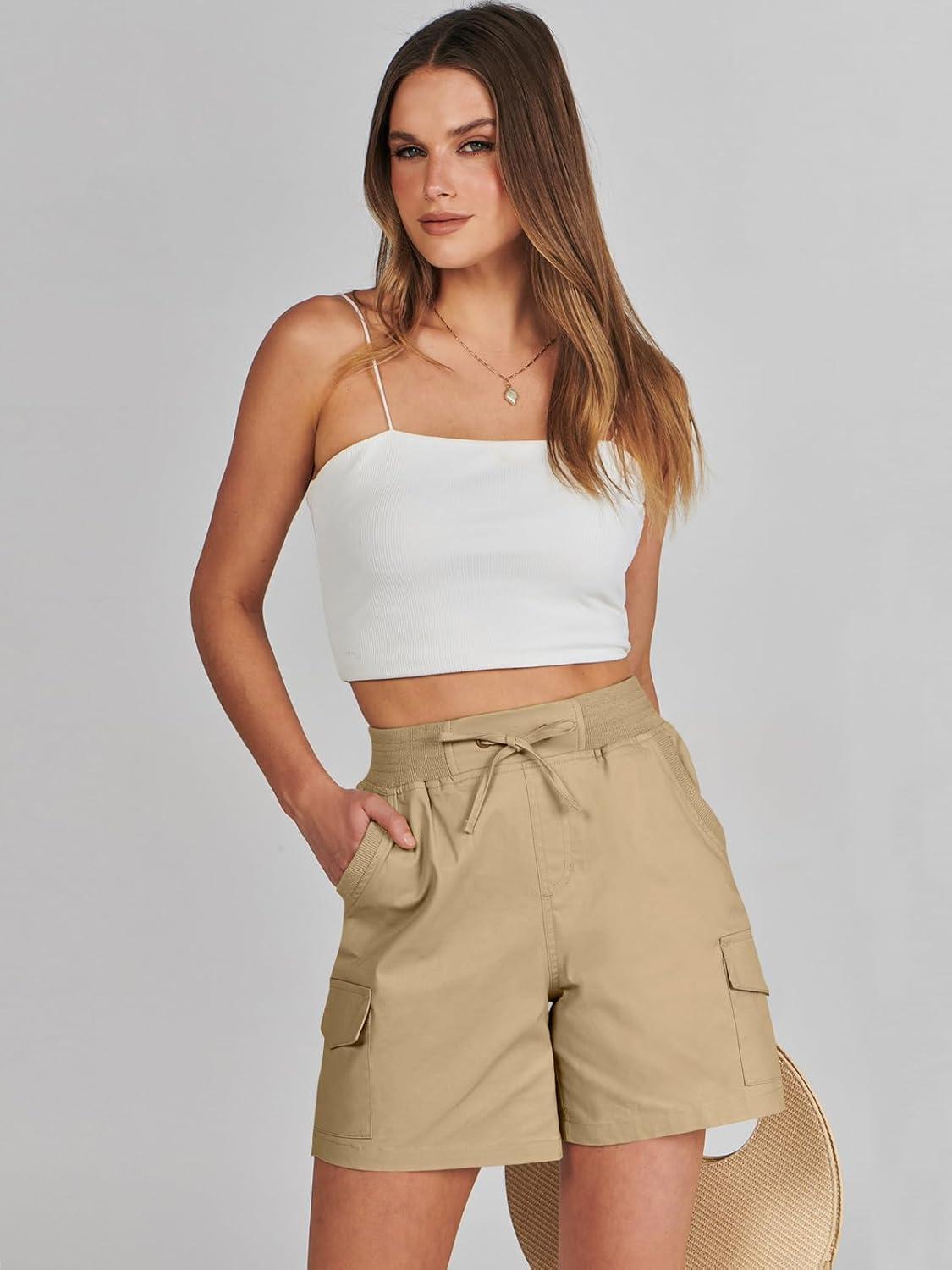 ANRABESS Womens Summer Shorts 2025 Dressy Casual Hiking Cargo Shorts Trendy Outdoor Outfits 6 Pockets(Khaki)