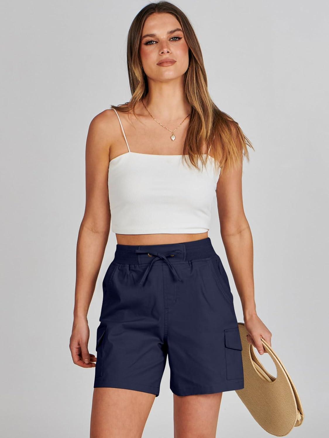 ANRABESS Womens Summer Shorts 2025 Dressy Casual Hiking Cargo Shorts Trendy Outdoor Outfits 6 Pockets(Navy Blue)