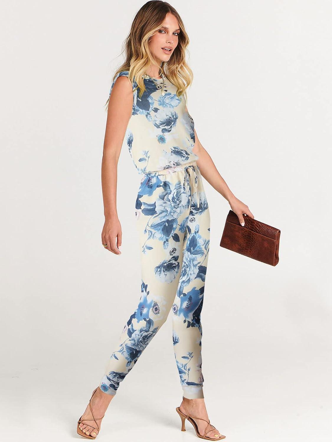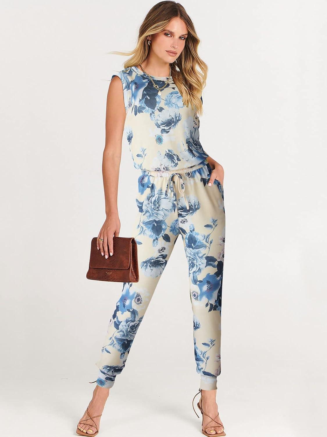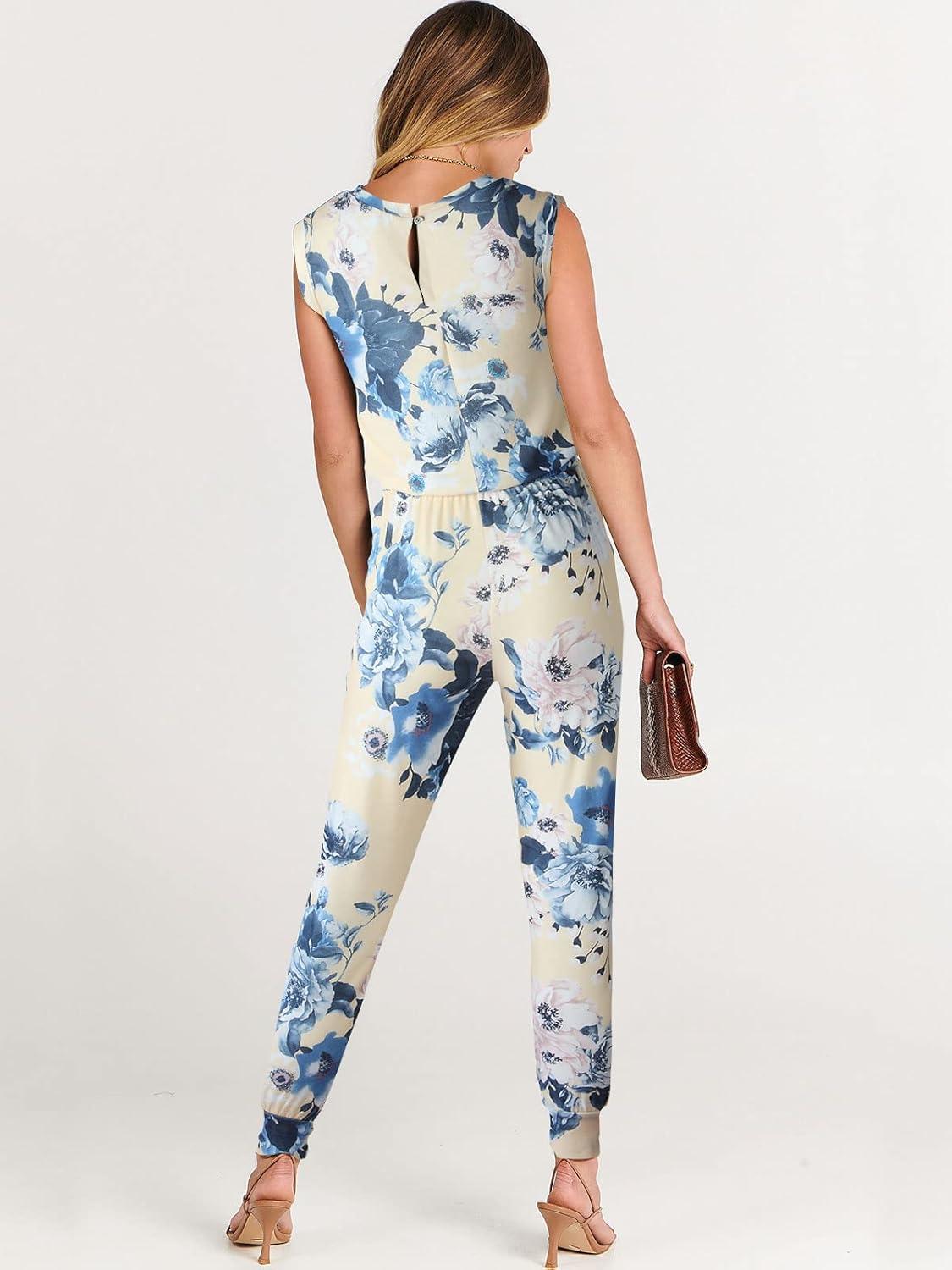 ANRABESS Womens Summer Sleeveless Jumpsuits Casual Dressy Stretchy Crewneck Rompers One Piece Outfits Fall Fashion 2025(Blue)