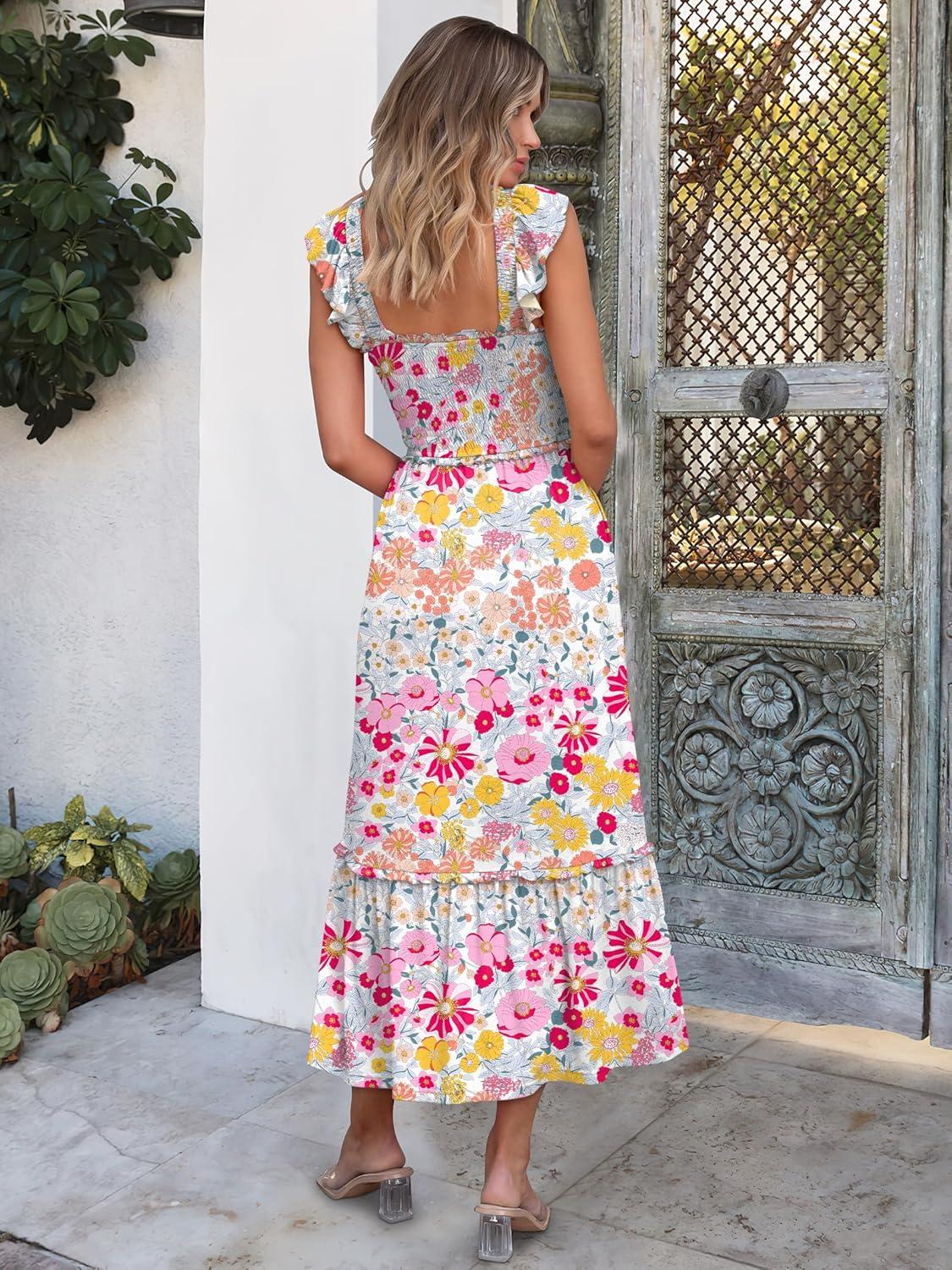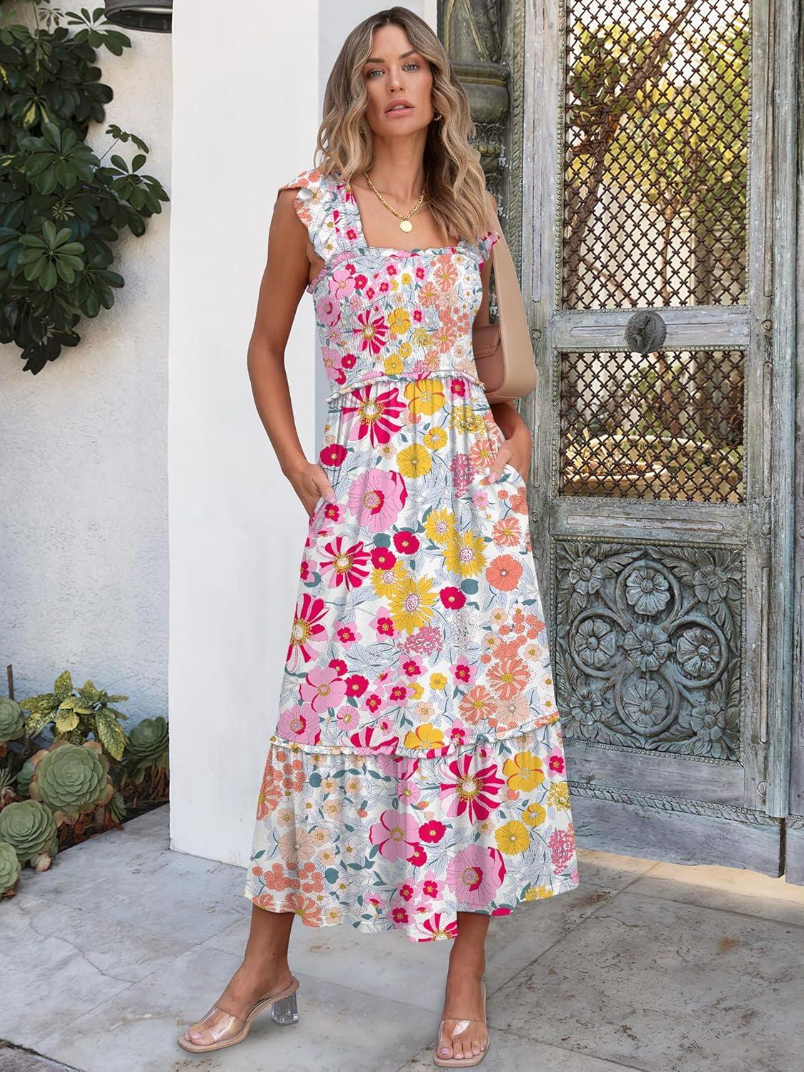 ANRABESS Womens Summer Sleeveless Maxi Dress Square Neck Smocked Boho Casual Ruffle Strap Flowy A-Line Long Beach Sundress(Multicolour Floral)