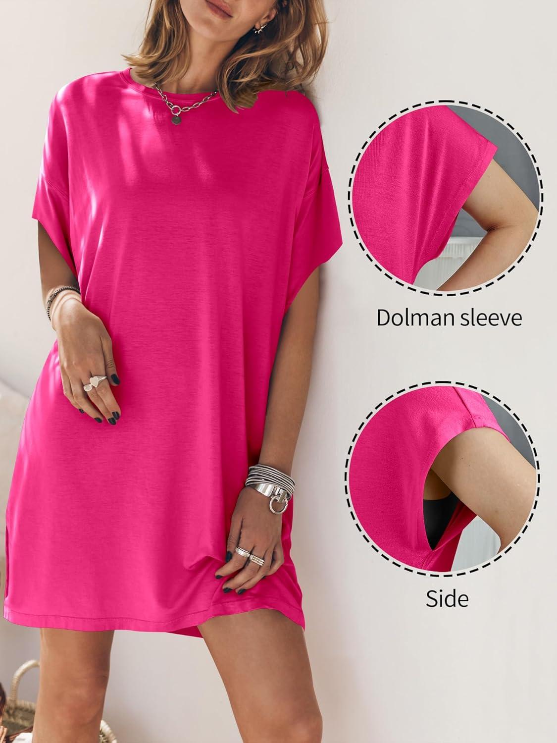 ANRABESS Women’s Summer T Shirt Dress 2026 Beach Vacation Travel Outfits Casual Simple Soft Mini Sundress Cover Up Clothes(Hot Pink)