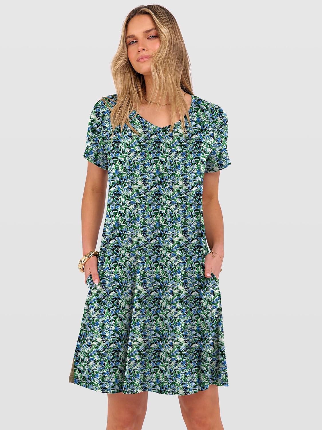 ANRABESS Women's Summer T Shirt Dress Casual V Neck Short Sleeve Floral Boho Flowy Mini Dresses 2026 Beach Vacation Clothes(Floral Blue Green)