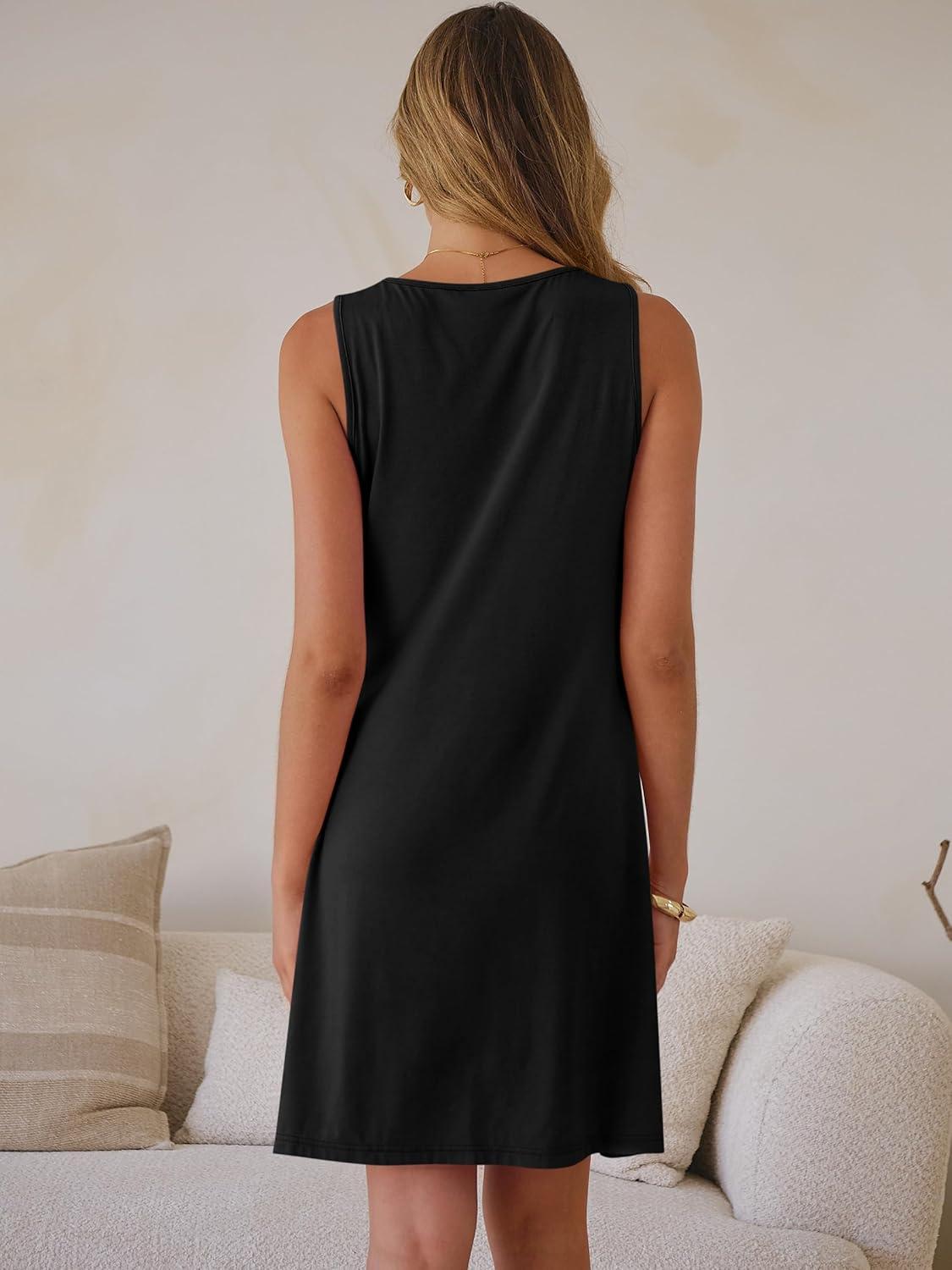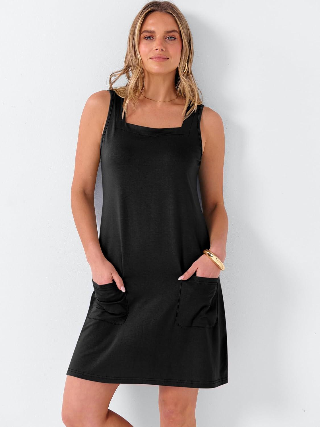 ANRABESS Womens Summer Tank Dress Square Neck Sleeveless Mini Sundress with Pocket 2026 Casual Floral Beach Vacation Outfits(Black)